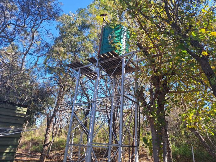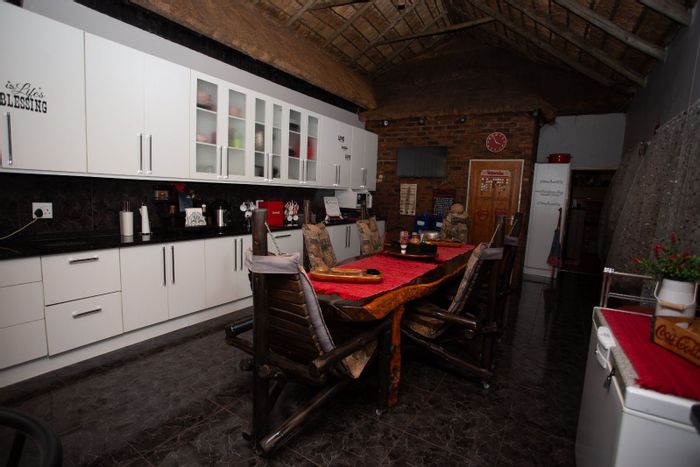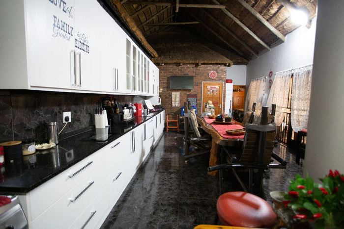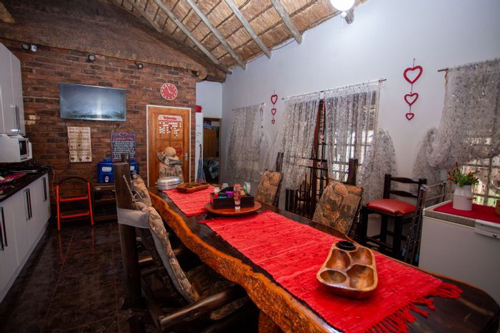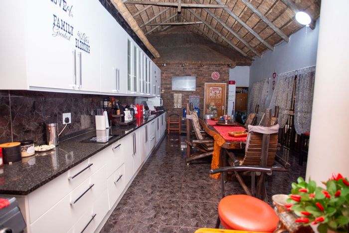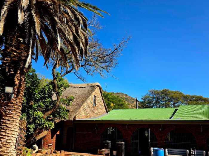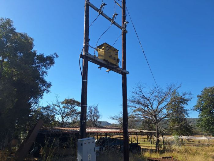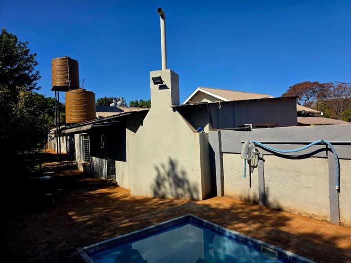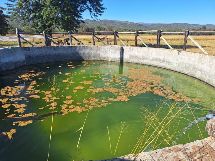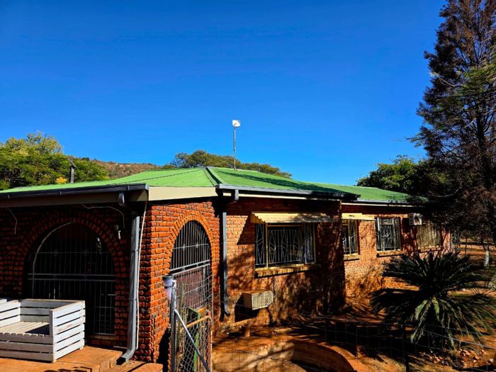 Country lifestyle and small-scale farming 5km from Mokopane beneath the Waterberg Mountains — pool, flatlet, large chicken houses (±20,000 capacity), fruit orchards, solar-equipped main home. 4 beds, 2 baths.