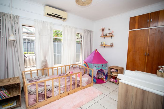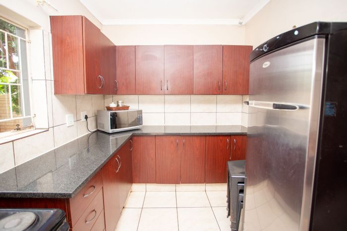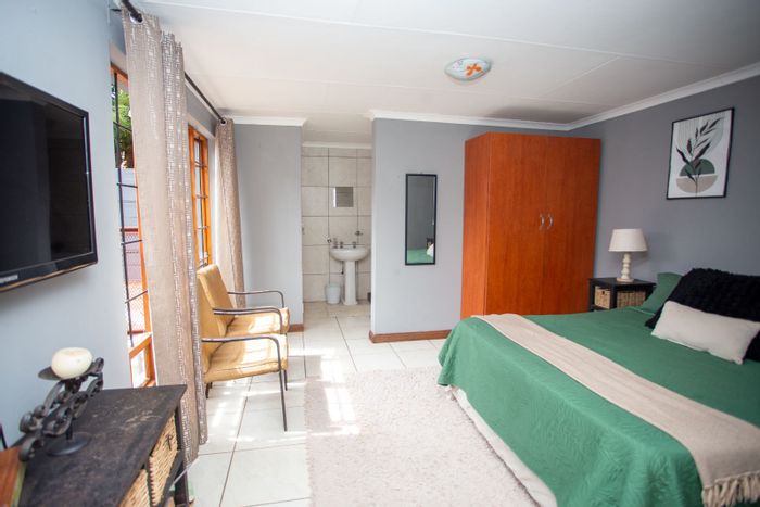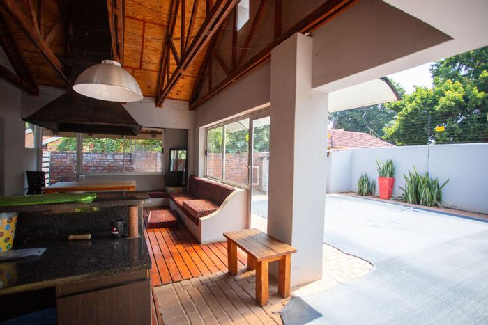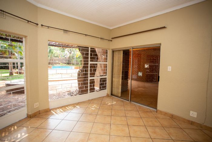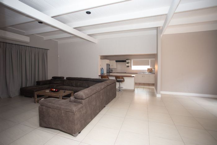 Entertain effortlessly in leafy Kameeldoringpark with a double-volume lounge, indoor bar, and sparkling pool amid a lush garden — three bedrooms and two bathrooms for family living.