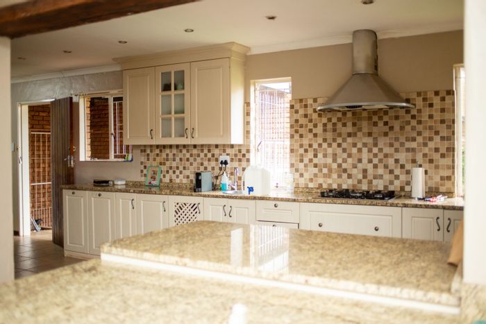Family-focused entertainer in Chroompark with country-style kitchen, pool, lapa and loft — guest suite/study, generous garden and double garage, close to schools, shops and medical facilities.