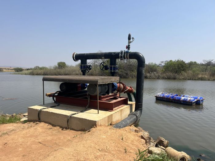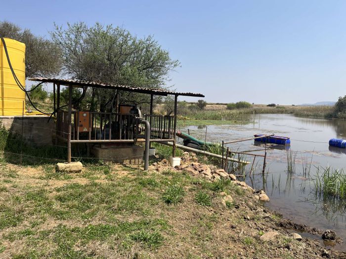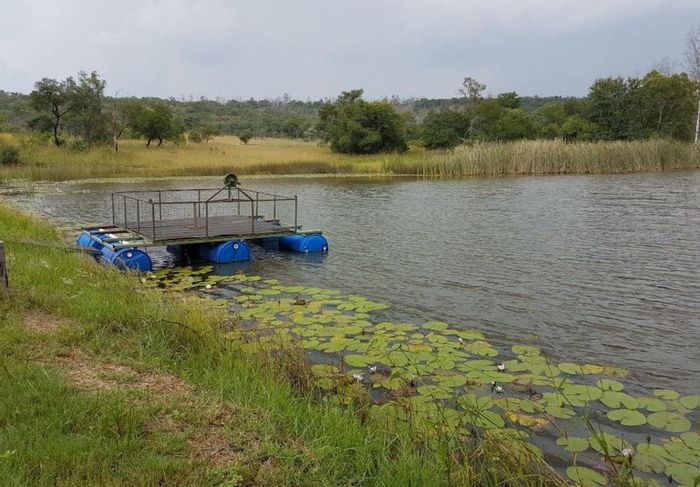 Country lifestyle minutes from Mookgophong with water-rich 85ha farm, irrigation-ready dams, cement fish ponds and game camp; main house with veranda, pool and five bedrooms, three bathrooms.