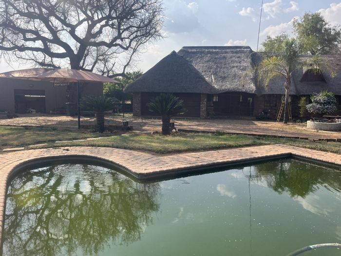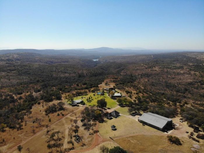 Ranch-style retreat near Mokopane with Waterberg and Springbokvlakte views — water-rich 42ha game and grazing farm featuring pool, entertainment hall, boreholes, and development potential.