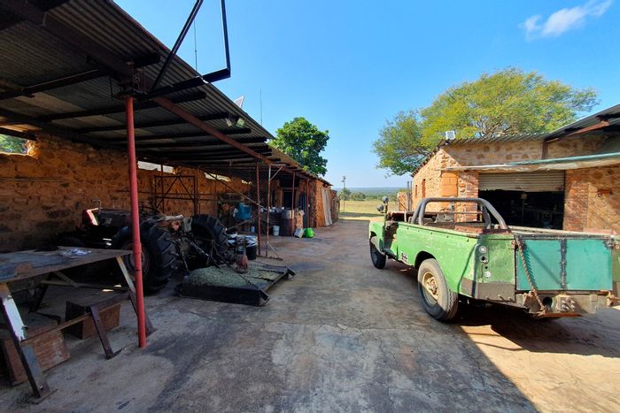 Embrace bushveld living on 21 hectares—fully fenced with four camps, borehole and 2 hectares under crops. Relax on the farmhouse veranda and enjoy outdoor braai; 4 beds, 1 bath.