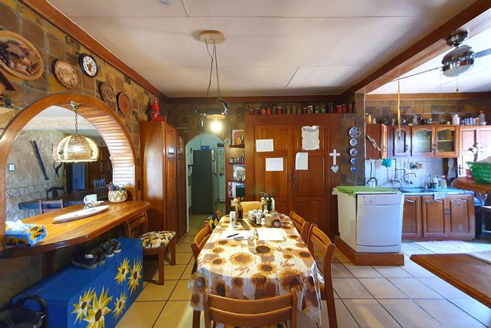 Embrace peaceful bushveld living 8km from Mookgophong, ideal for small-scale farming with cattle handling facilities and a high-capacity borehole. Multiple residences with nine bedrooms, 4.5 baths, double garage.