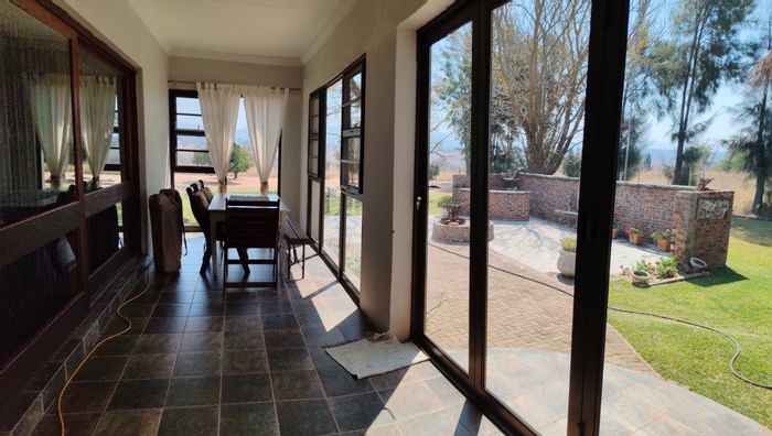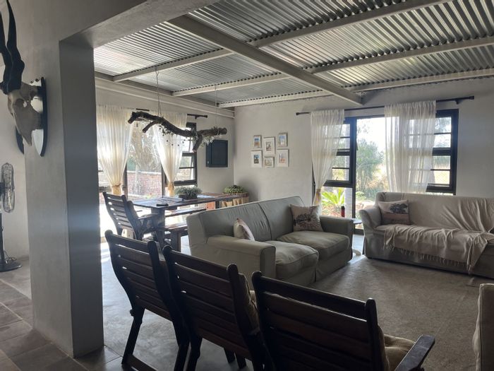 Productive farm life 12 km NE of Mookgophong, offering reliable irrigation with multiple boreholes and dams — outdoor entertainment area with built-in braai and pool; five bedrooms, three bathrooms.