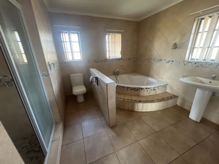 Peaceful low-maintenance living in Mookgophong's secure, well-kept complex, with a private courtyard garden and solar backup — three bedrooms, two bathrooms and double garage.