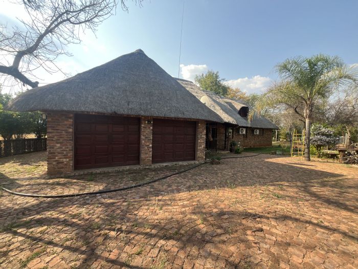 Host lodges, weddings and safaris on 77 hectares near Mookgophong/Naboomspruit — game‑fenced and stocked with wildlife, dams, boma, lapa bar, splash pools and staff houses.
