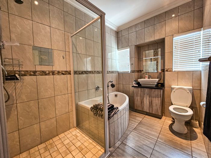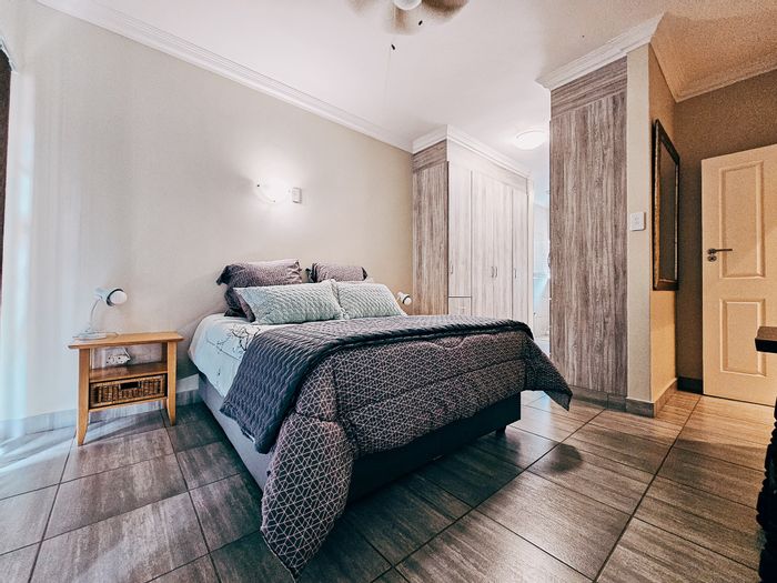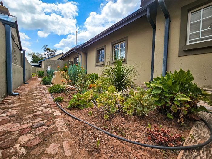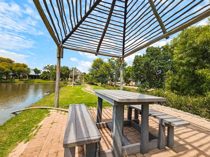 Retire or holiday in peaceful Die Oog Estate, surrounded by lush greenery and a dam; enjoy a covered dining/braai area, modern kitchen and private garden — three beds, two baths.