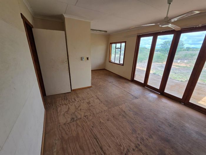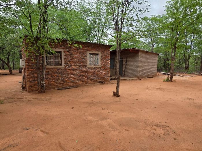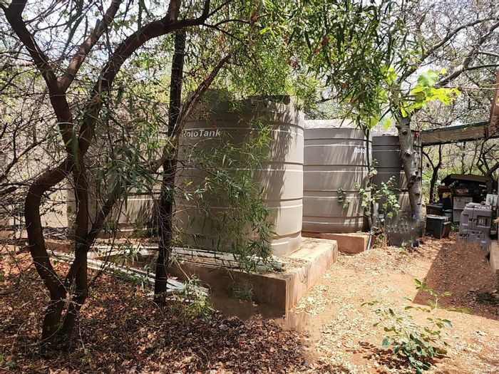 Entrepreneurial riverside lifestyle along the Sand River near Mopane, bushveld setting with five cement hatch tanks and 50,000L reservoir — includes two-bedroom, one-bath homestead.
