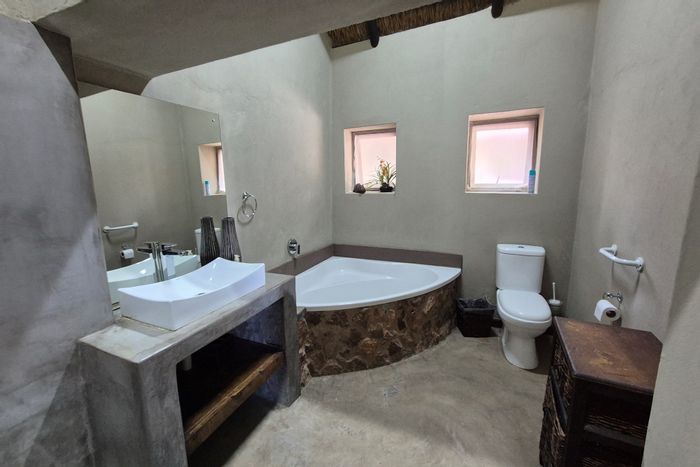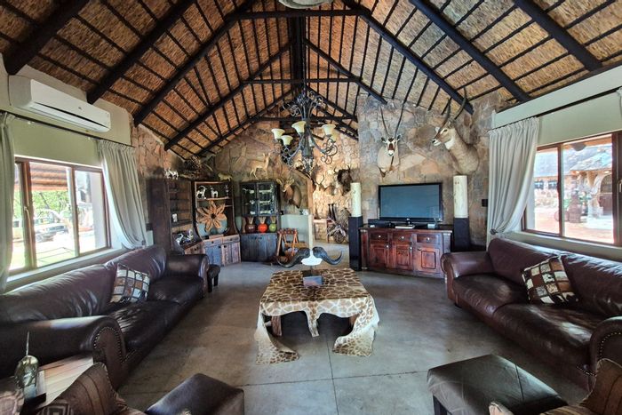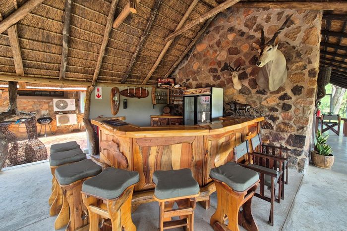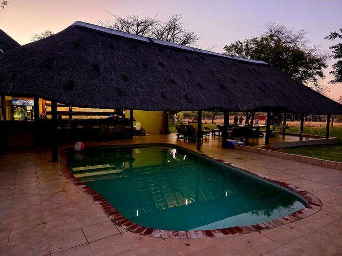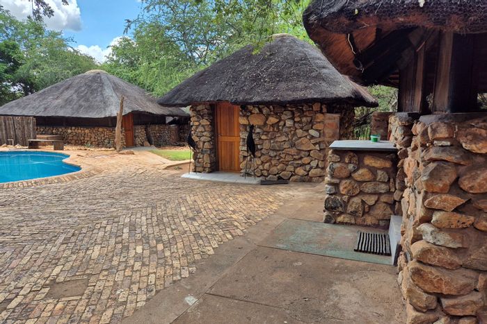 Embrace authentic bushveld hospitality on 578 hectares with established guest chalets and rare abundant water supply — main residence (5 beds, 2 baths), pool and restaurant, ideal for a lodge
