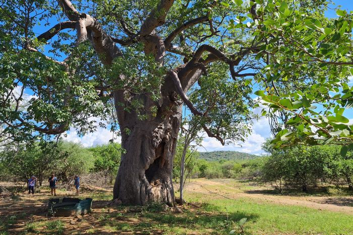 Escape to Musina–Tshipise bushveld beneath towering baobabs, with a seasonal gulley and two 4,000 L/hr boreholes—ideal for antelope or small stock on 42,826 m².