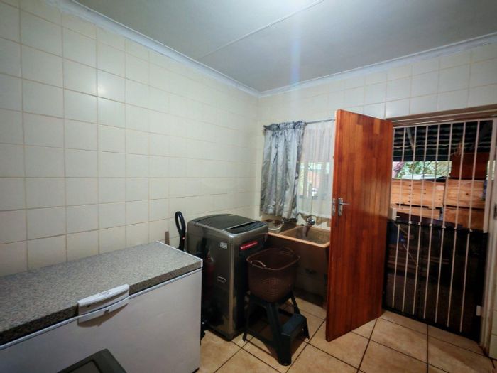 Low-maintenance family living in a private, leafy setting with expansive grounds — includes a bonus 2,180 m² vacant stand for expansion. Four bedrooms, three bathrooms, double garage.