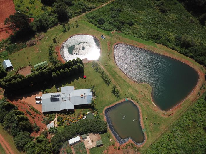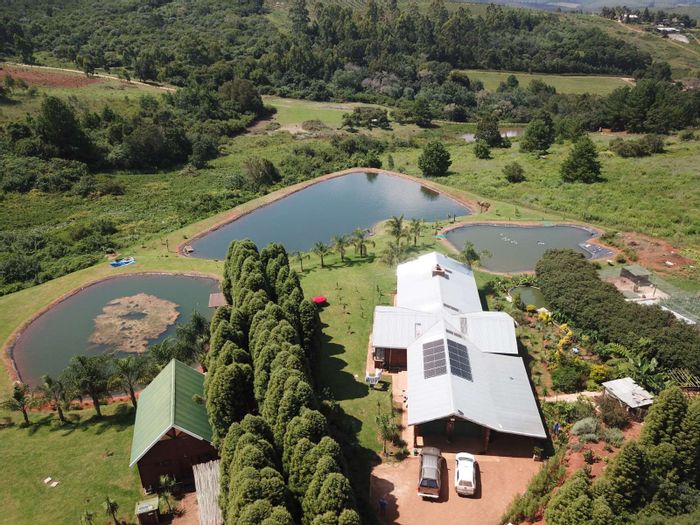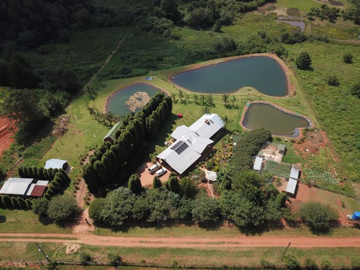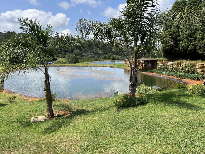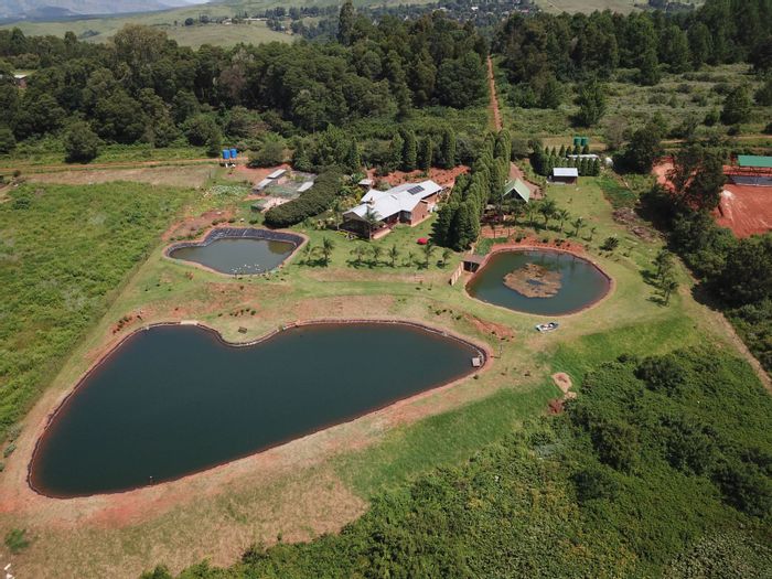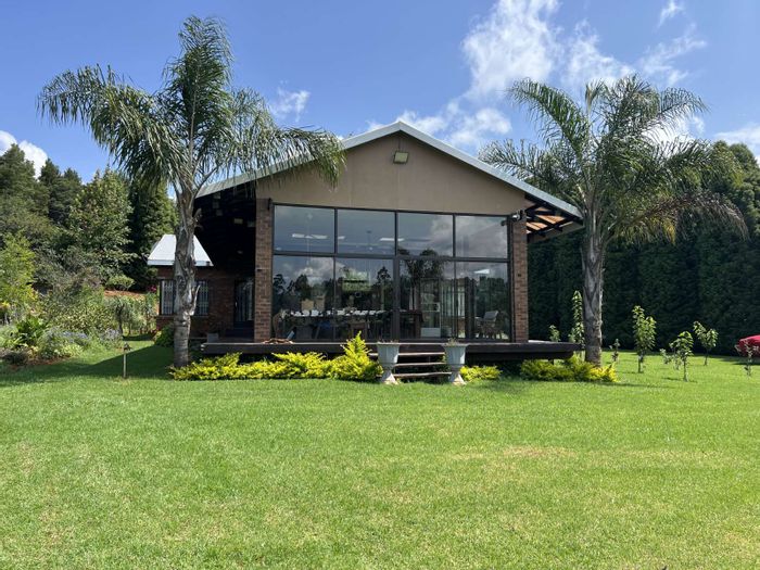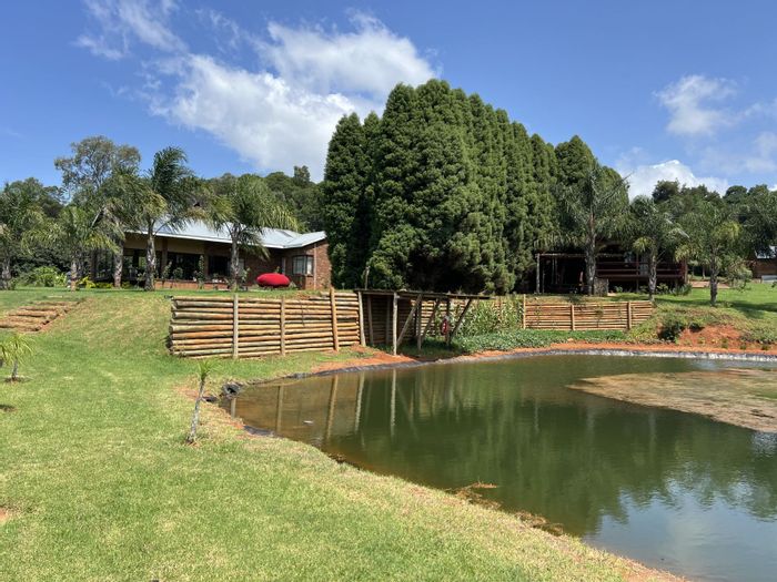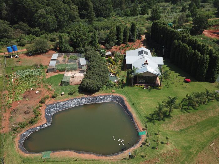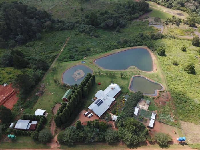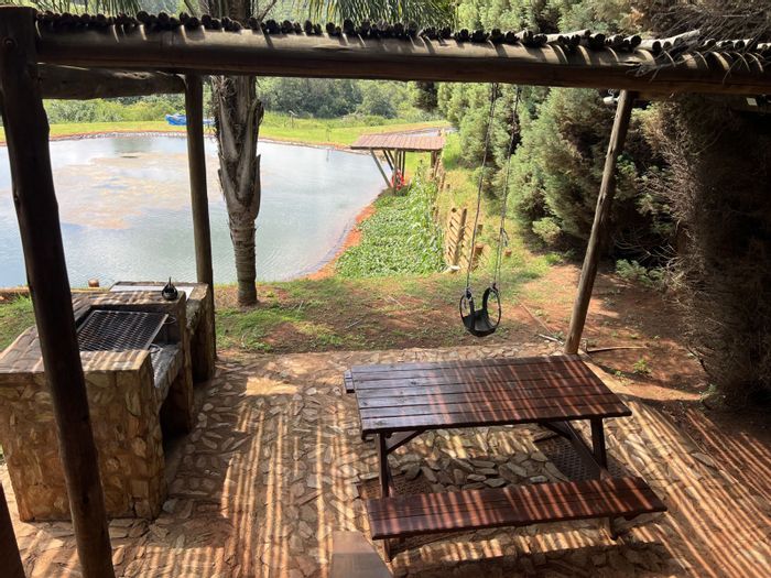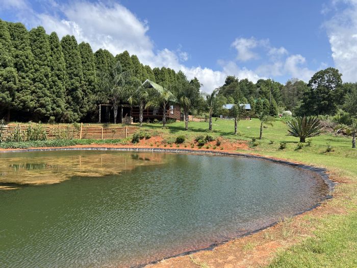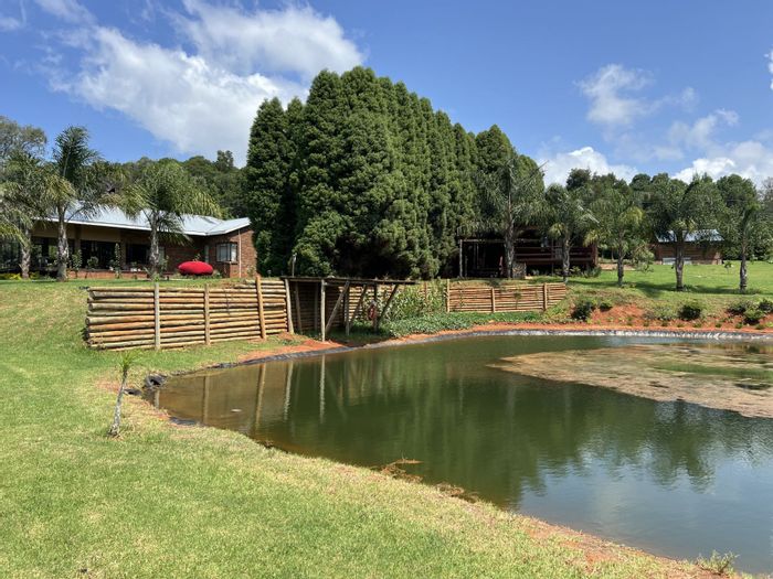 Haenertsburg smallholding offering 180° grassland and dam views, private fishing ponds and income-producing waterside chalet; solar-powered, borehole-fed grounds with 4 beds, 3 baths and double garage.