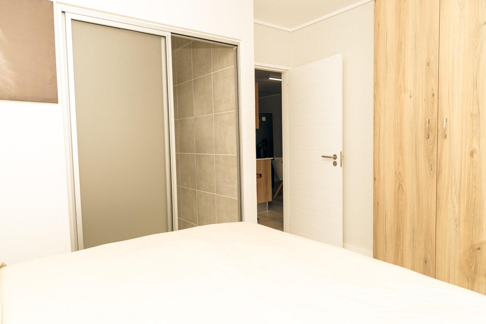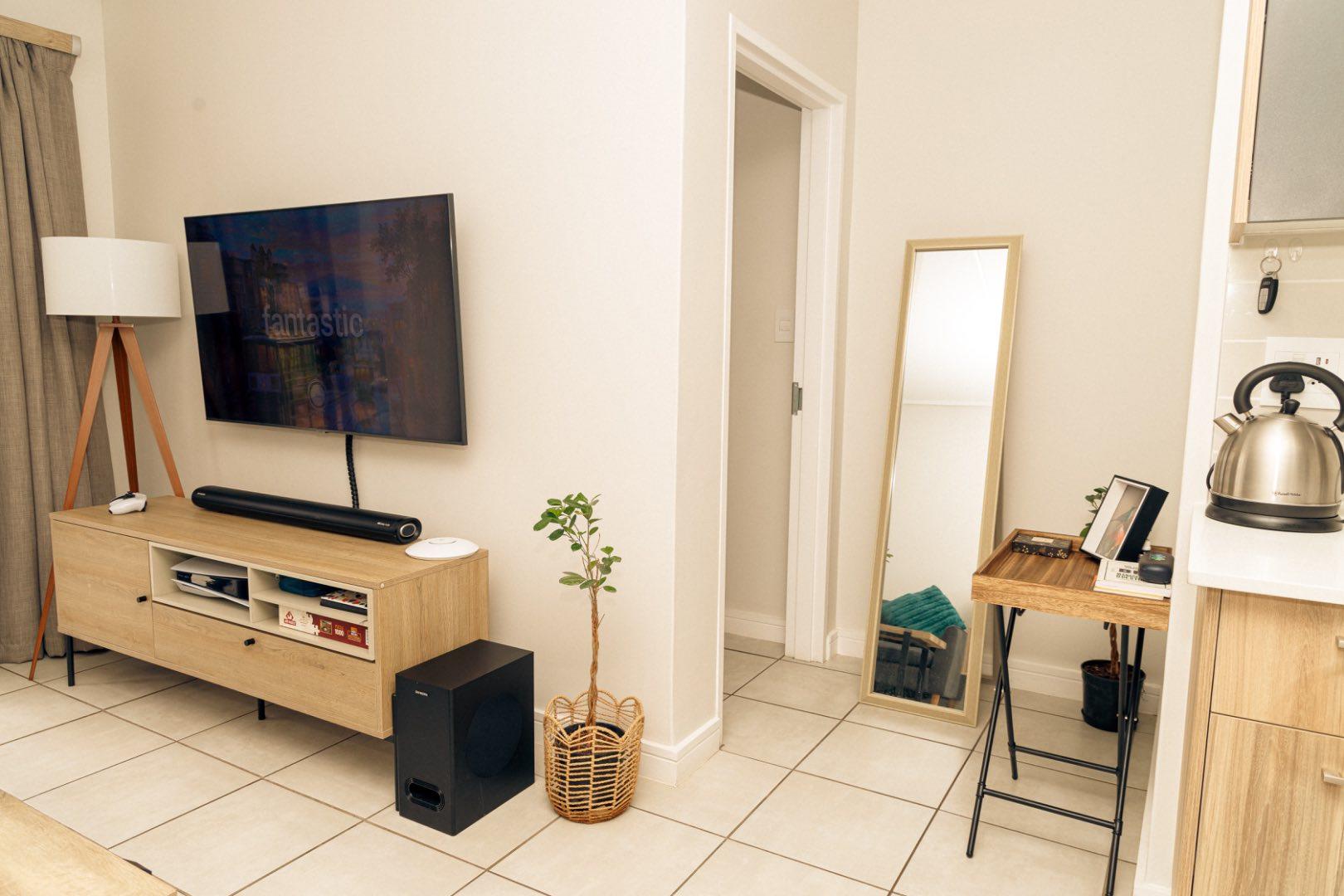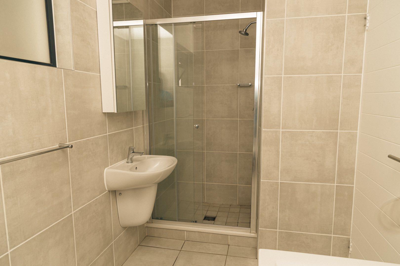 The unit comes with a kitchen fitted with an electric stove, space for a single door fridge, dishwasher/washer connections.