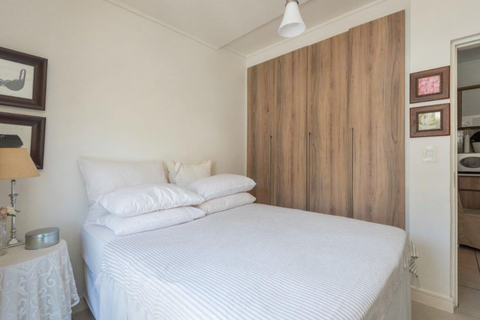 Bedroom is tiled with ample built-in cupboards and fitted with clear Trellidoor bars