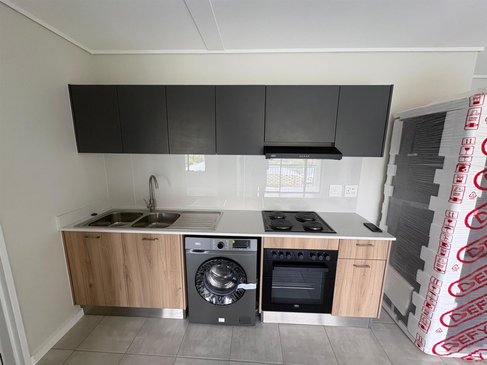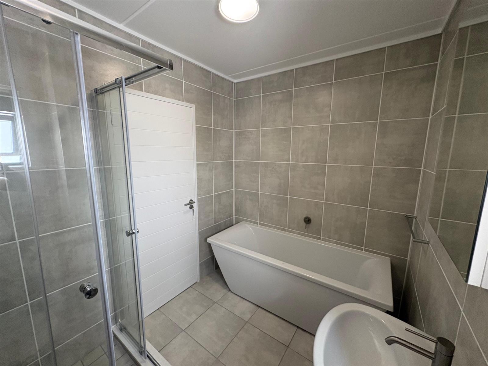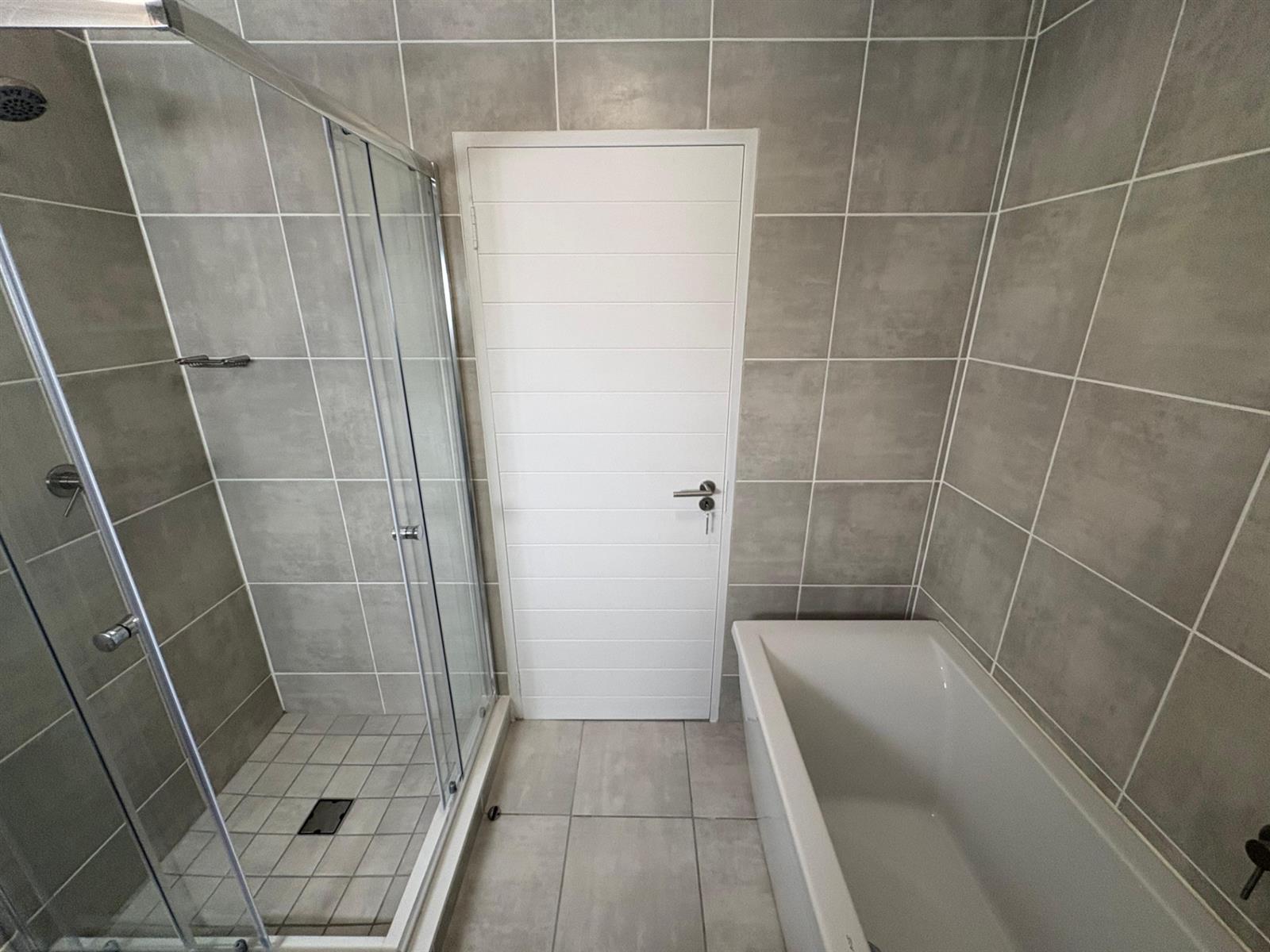 The spacious bedroom provides ample cupboard space and is serviced by a full bathroom with both a bath and a shower, ensuring everyday comfort.