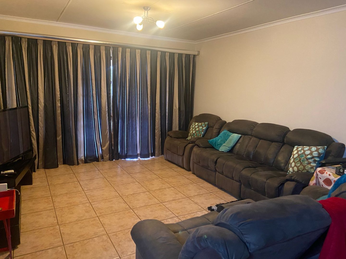 Open Plan Kitchen , Dining Room and Lounge. The kitchen features tile floors with built-in cupboards and includes a stove, the dining area and lounge flow seamlessly into each other also with tile floors. With a Study Room Located off the dining room, perfect for a home office or additional space. It also leads directly into the single garage.