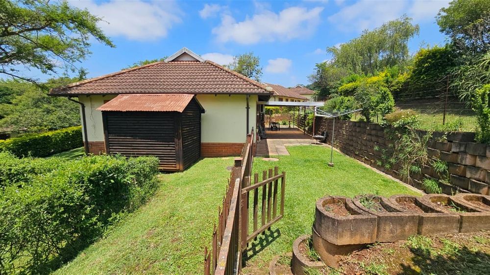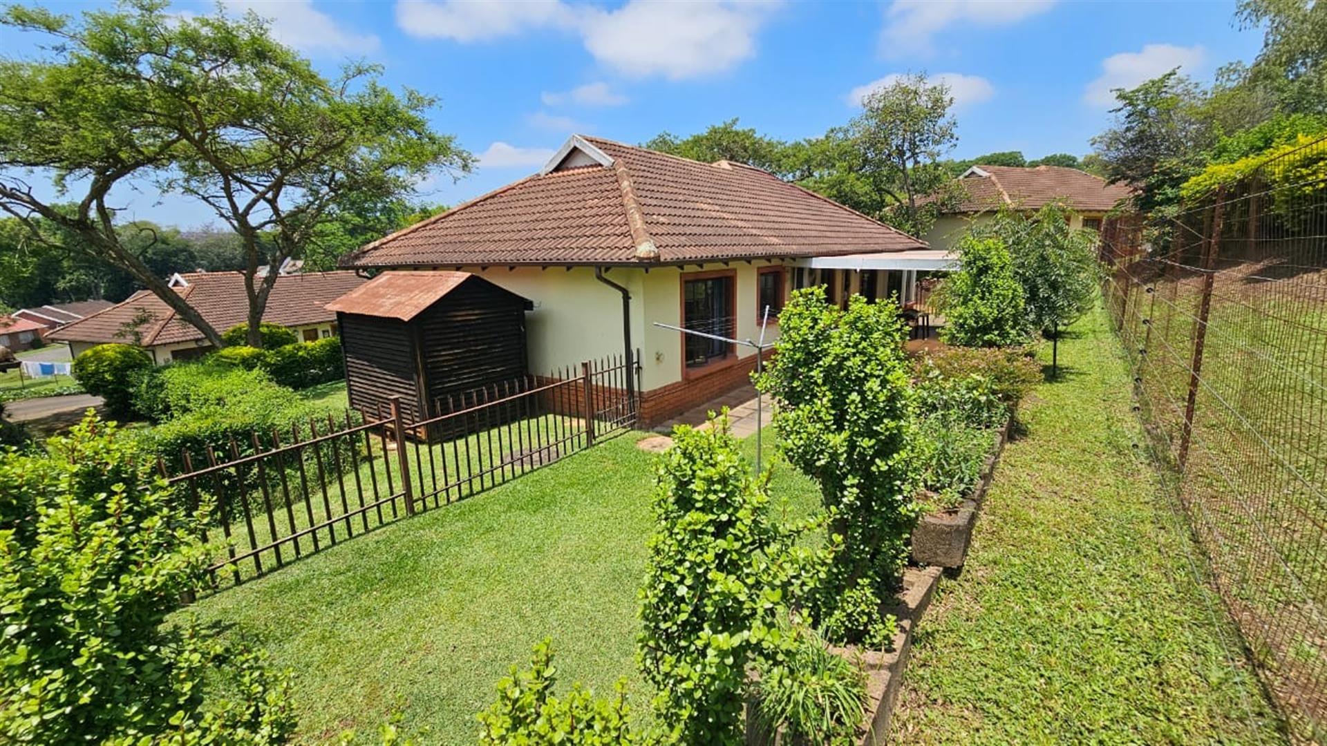 At the back, the under-cover entertainment veranda stretches wide — a peaceful, shaded space for gatherings, braais, slow afternoons, and long exhale-moments. The garden beyond it is both manageable and beautifully framed by nature.