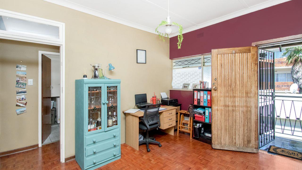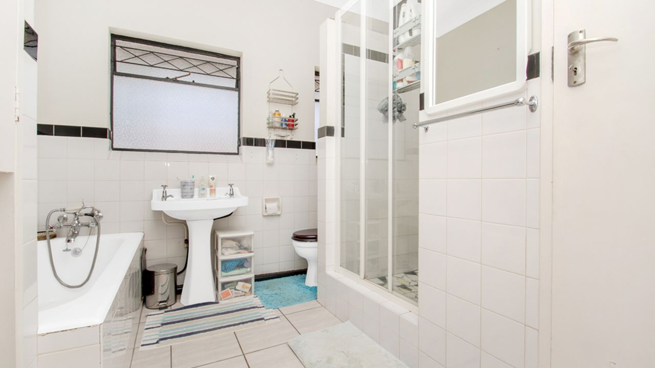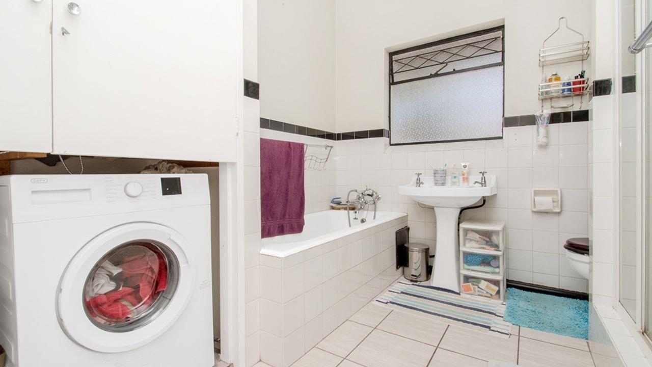 The generously sized bedroom features built-in cupboards and large windows ?which allow?s plenty of natural light. The full bathroom comprises a shower and a bath, space for your washing machine and a useful storage cupboard. There is an additional linen cupboard in the passage.