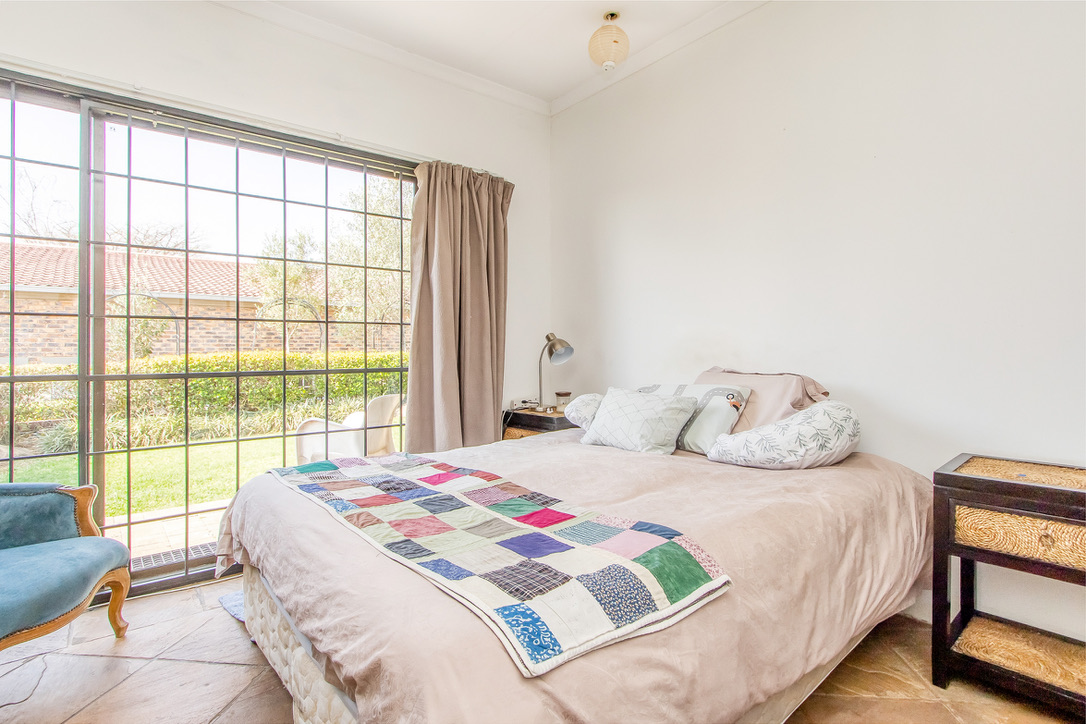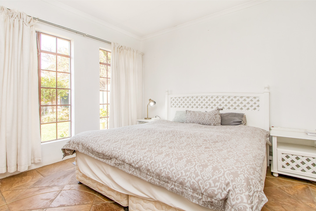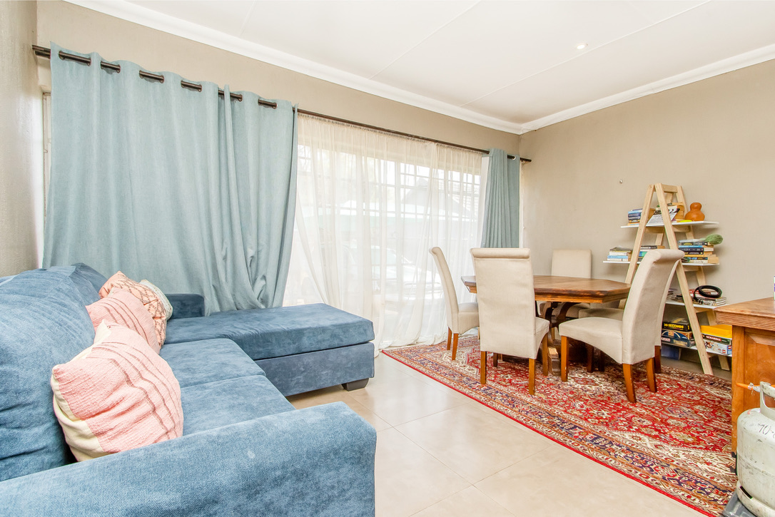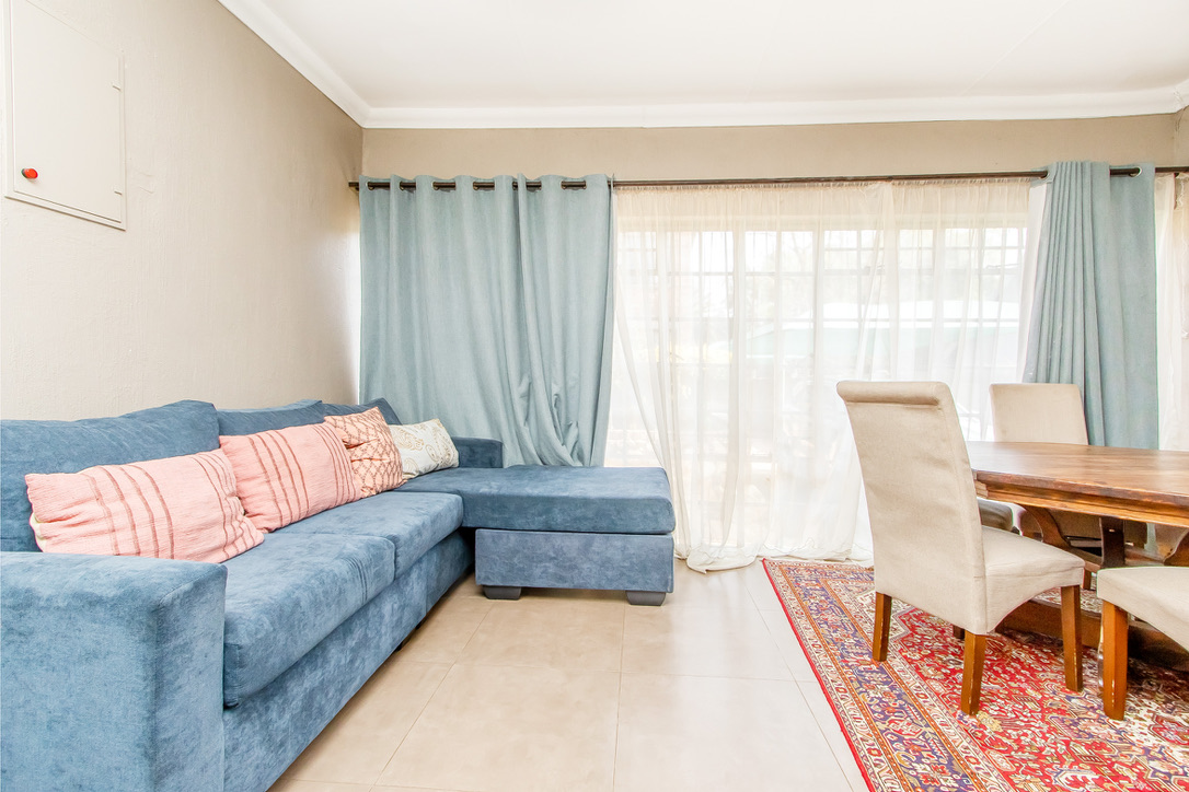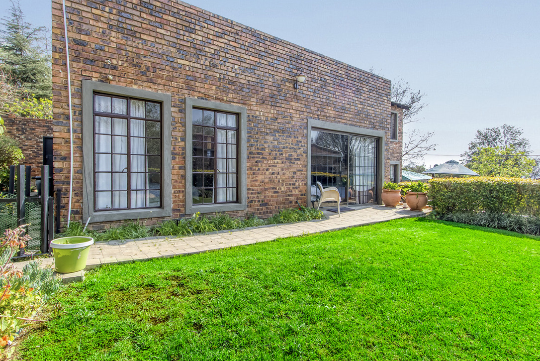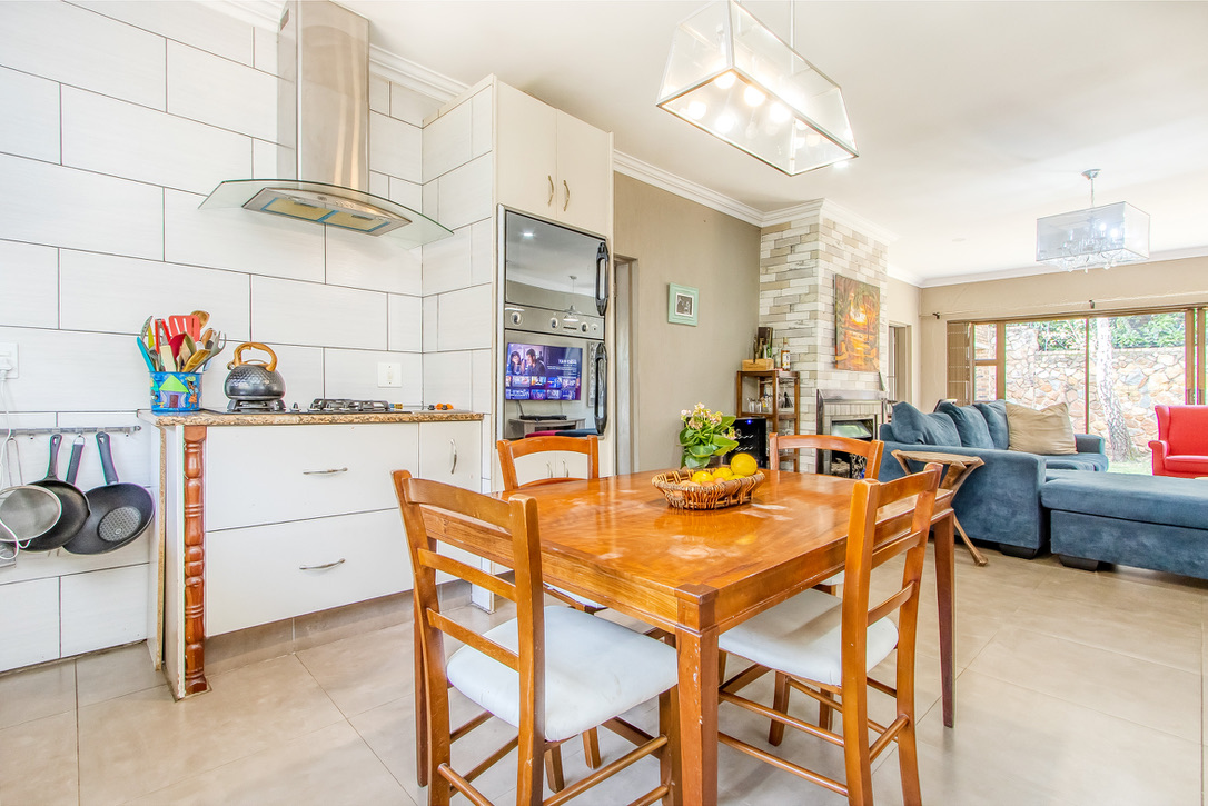 The main home features three spacious bedrooms and two bathrooms (main en-suite), a warm open-plan lounge and kitchen with classic wooden finishes, gas hob, and double eye-level oven. Living spaces flow seamlessly to a courtyard garden with a covered entertainer’s patio and built-in braai. Extras include a guest cloakroom, separate scullery and laundry, a flexible second lounge or home office, and double tandem shade parking.
