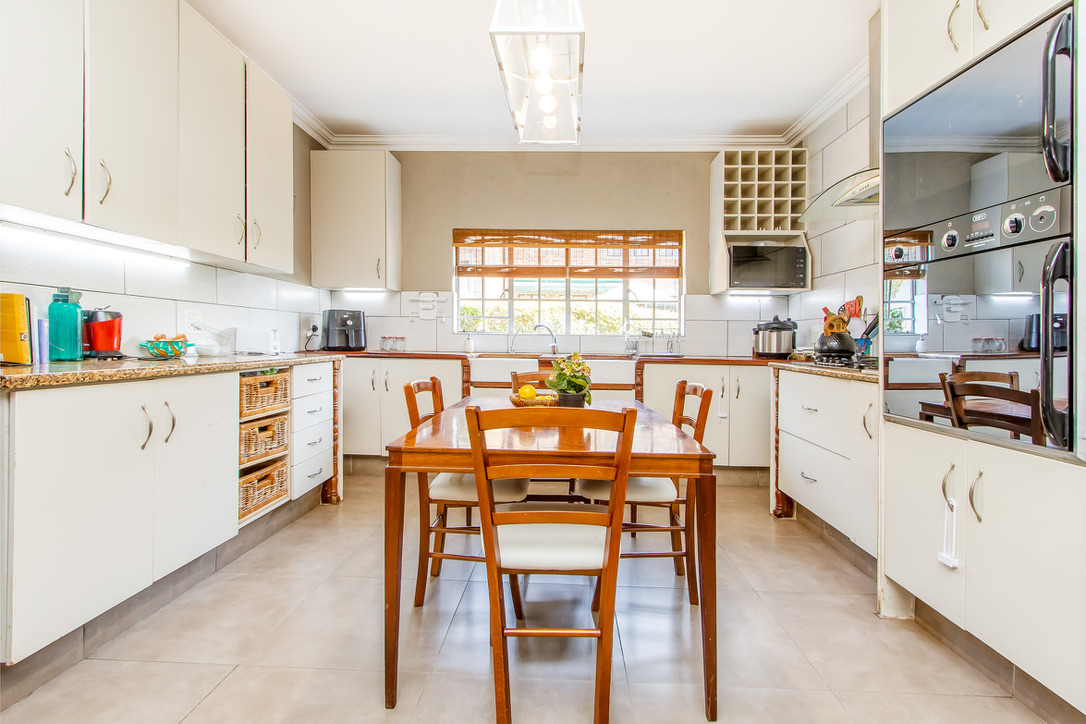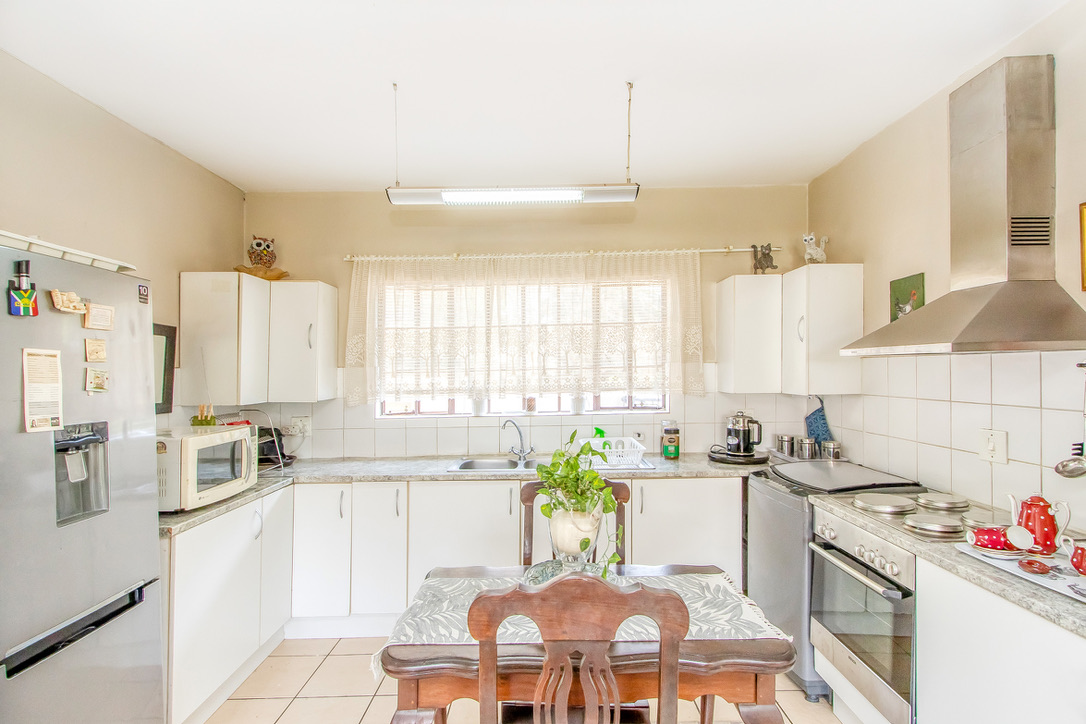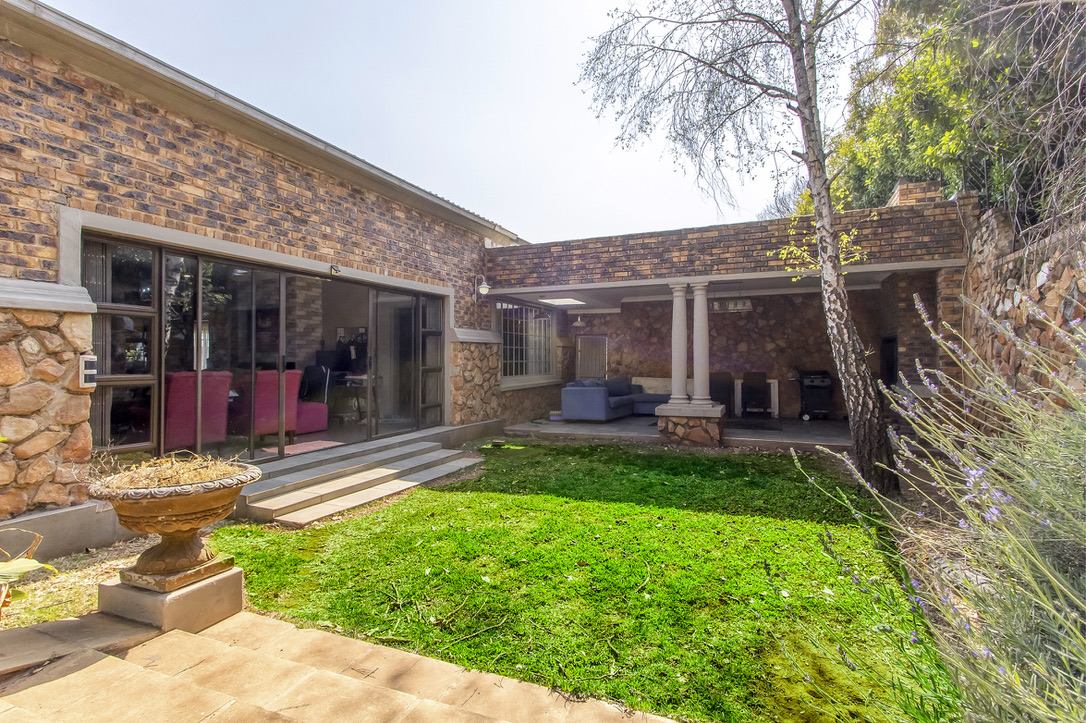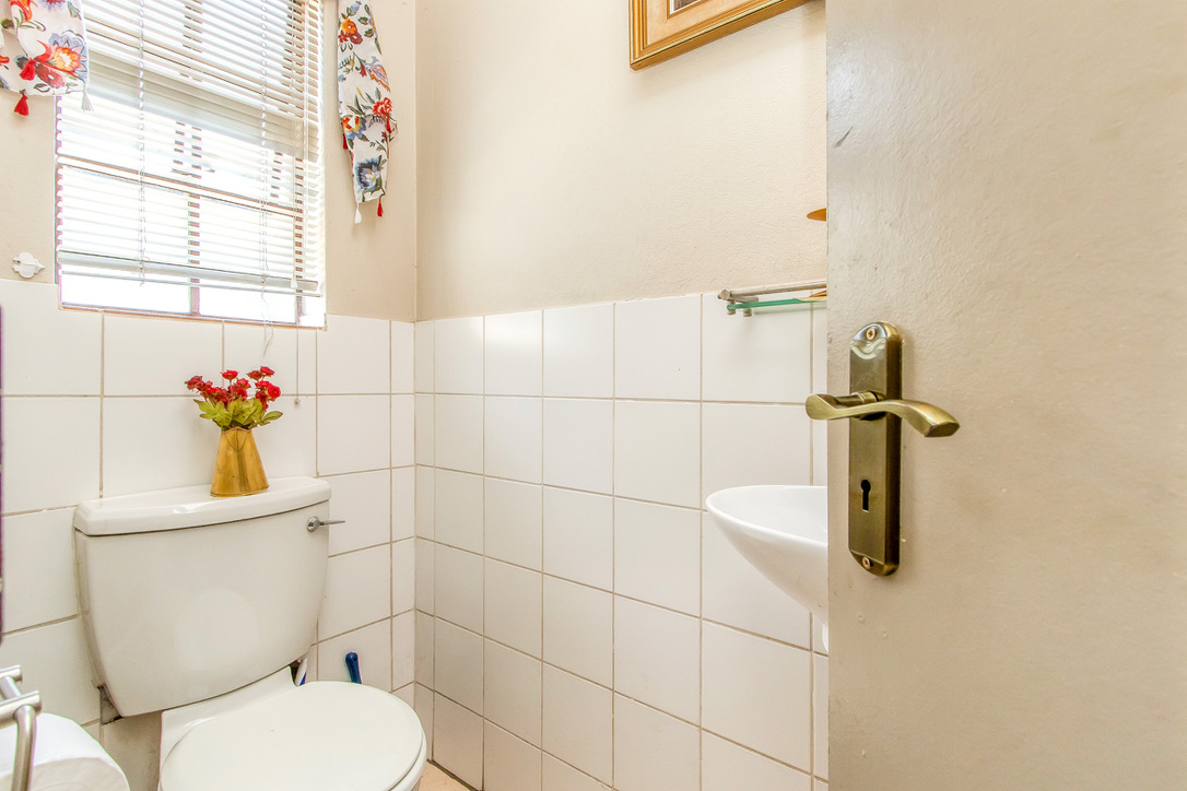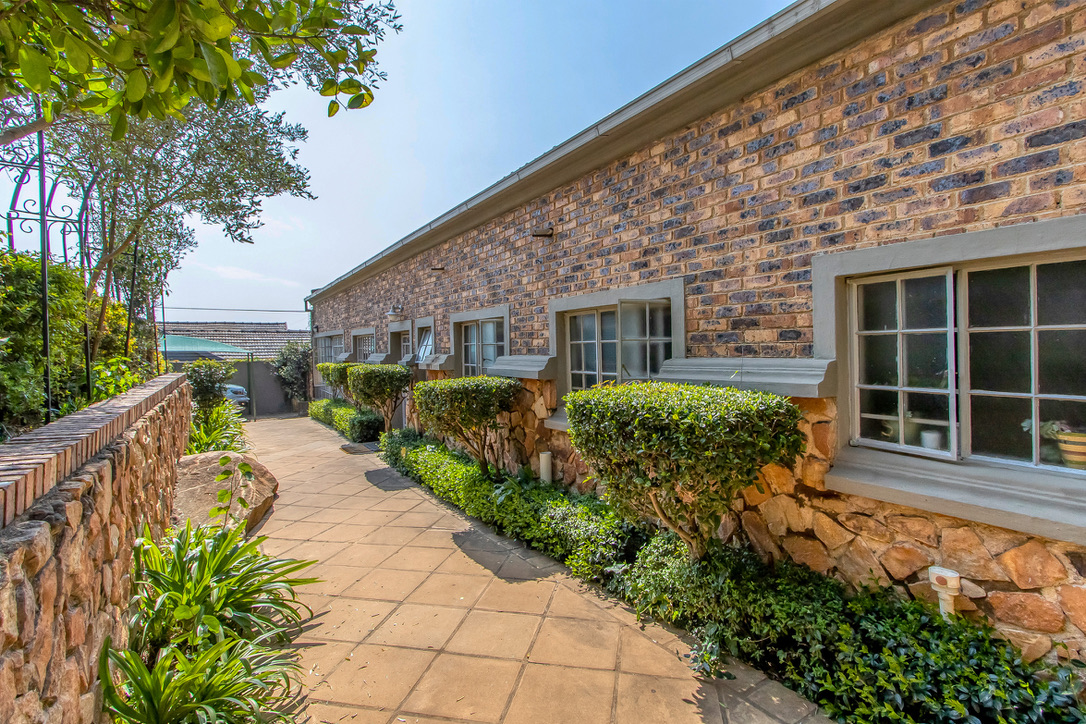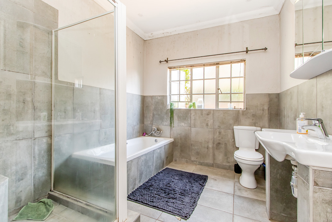 The main home features three spacious bedrooms and two bathrooms (main en-suite), a warm open-plan lounge and kitchen with classic wooden finishes, gas hob, and double eye-level oven. Living spaces flow seamlessly to a courtyard garden with a covered entertainer’s patio and built-in braai. Extras include a guest cloakroom, separate scullery and laundry, a flexible second lounge or home office, and double tandem shade parking.