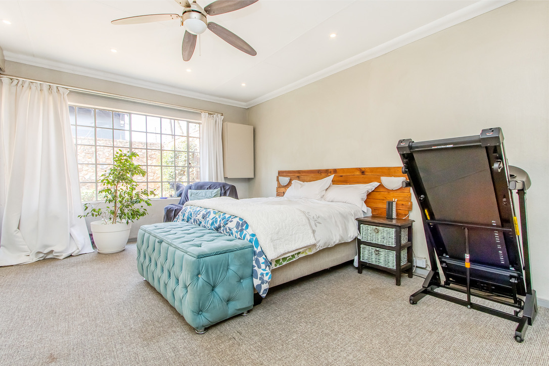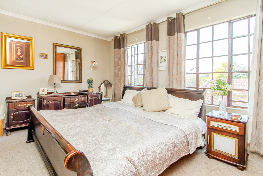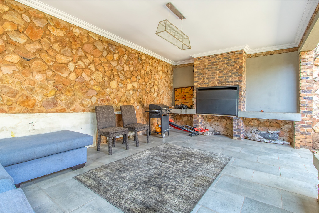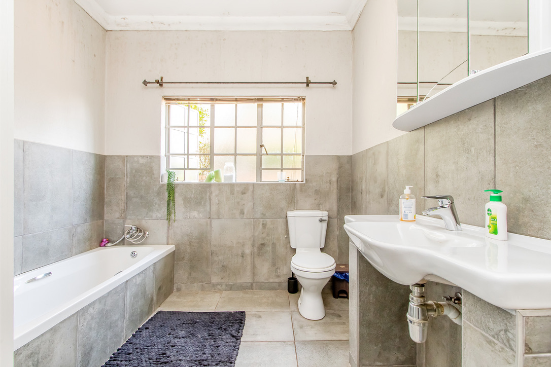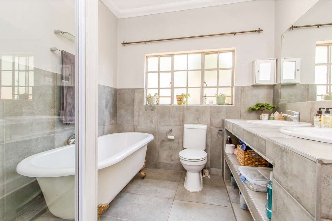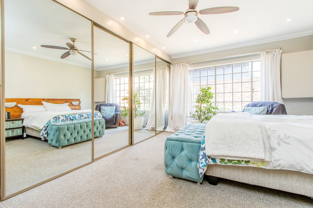 The main home features three spacious bedrooms and two bathrooms (main en-suite), a warm open-plan lounge and kitchen with classic wooden finishes, gas hob, and double eye-level oven. Living spaces flow seamlessly to a courtyard garden with a covered entertainer’s patio and built-in braai. Extras include a guest cloakroom, separate scullery and laundry, a flexible second lounge or home office, and double tandem shade parking.