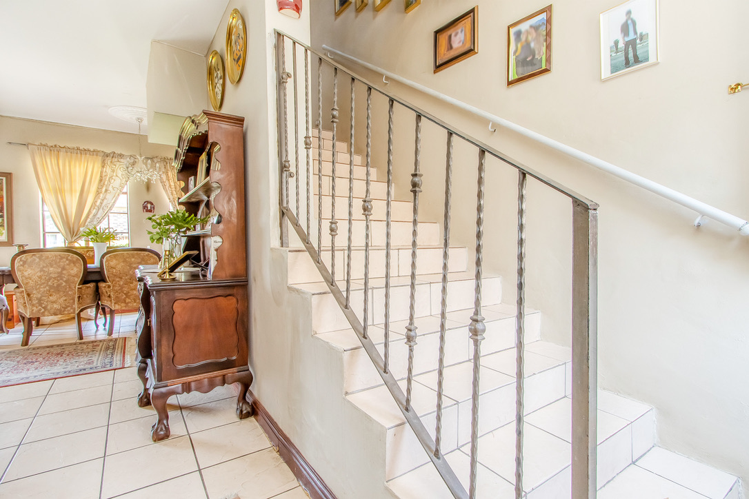 The second dwelling offers a private garden, open-plan living and dining area, modern kitchen, and upstairs two bedrooms plus a study nook and full bathroom — with rental potential of approximately R10,000 per month.