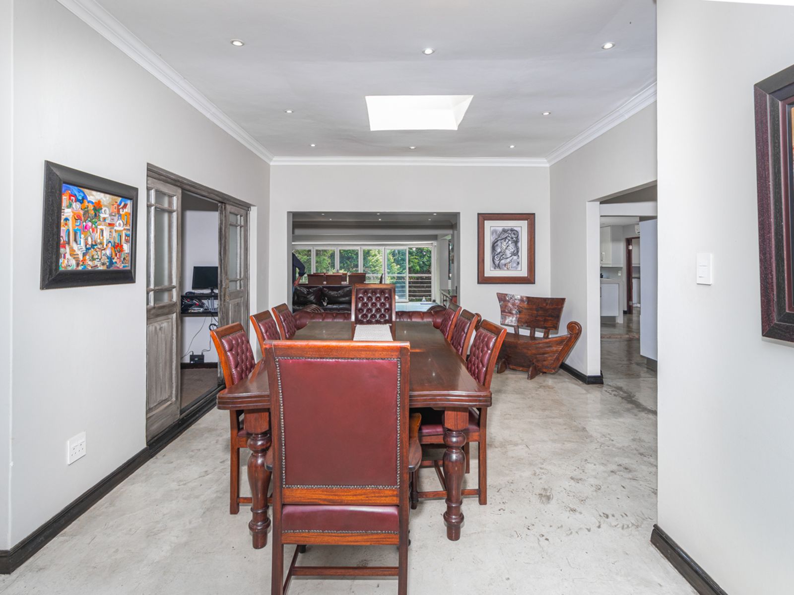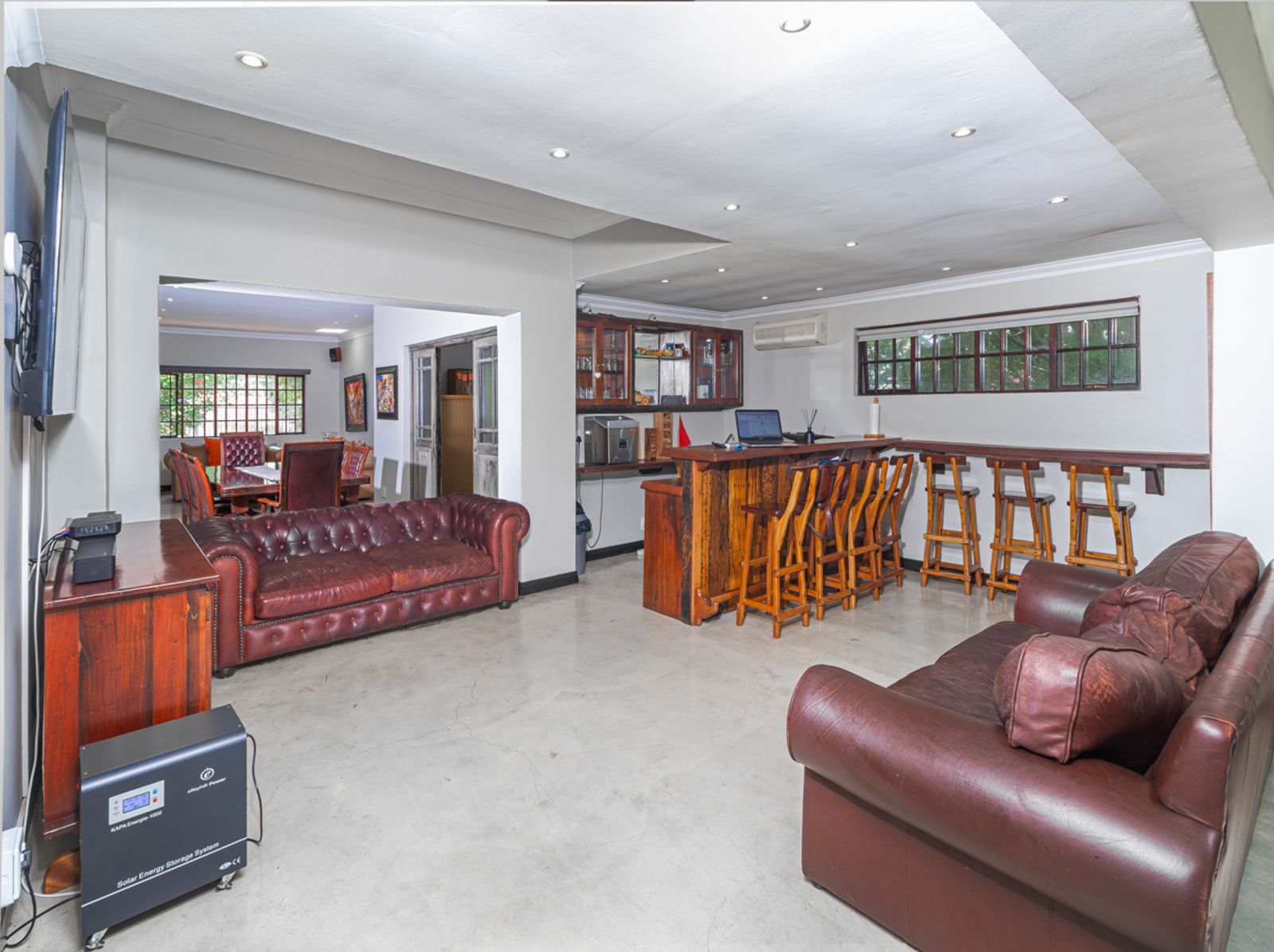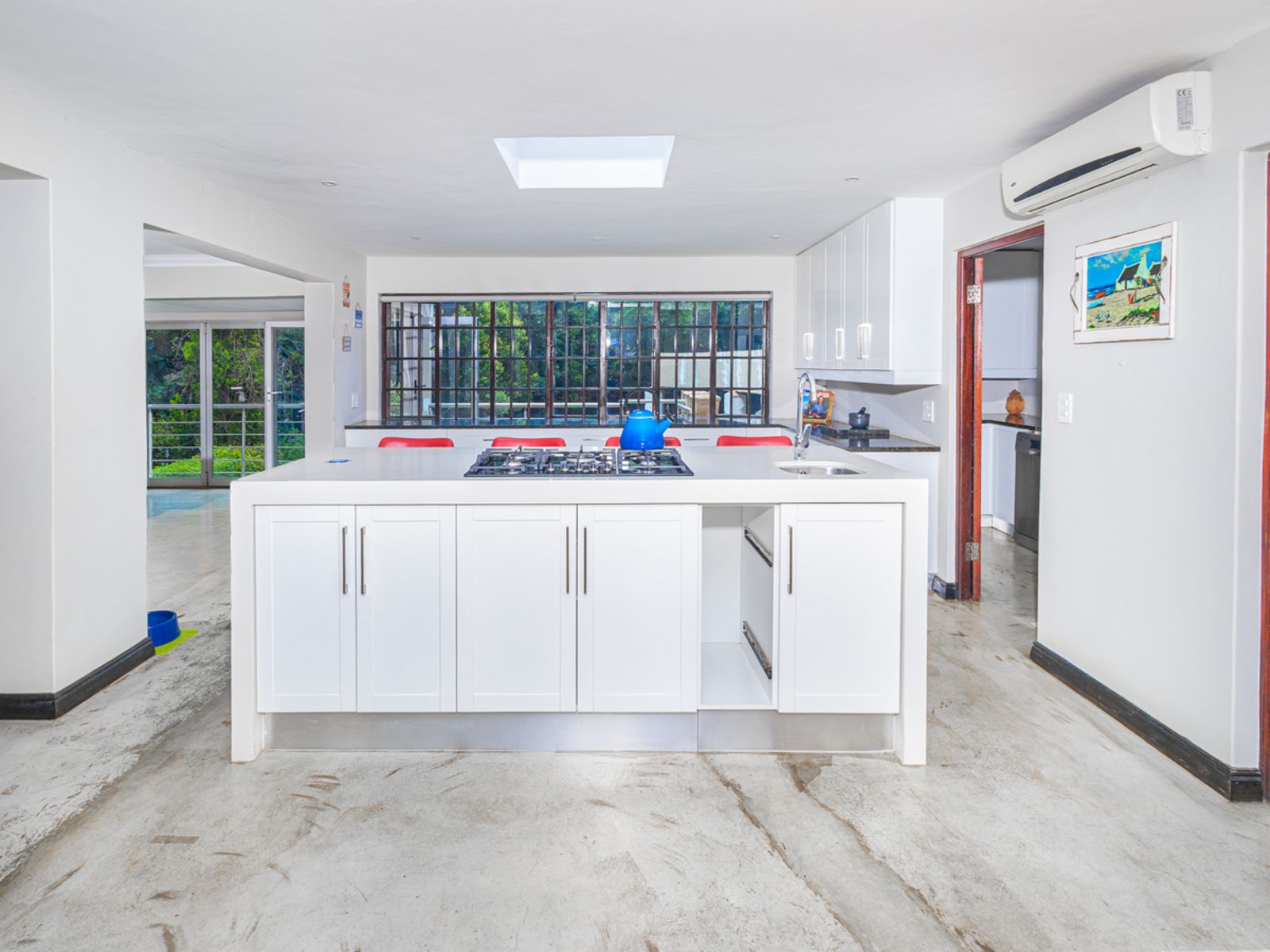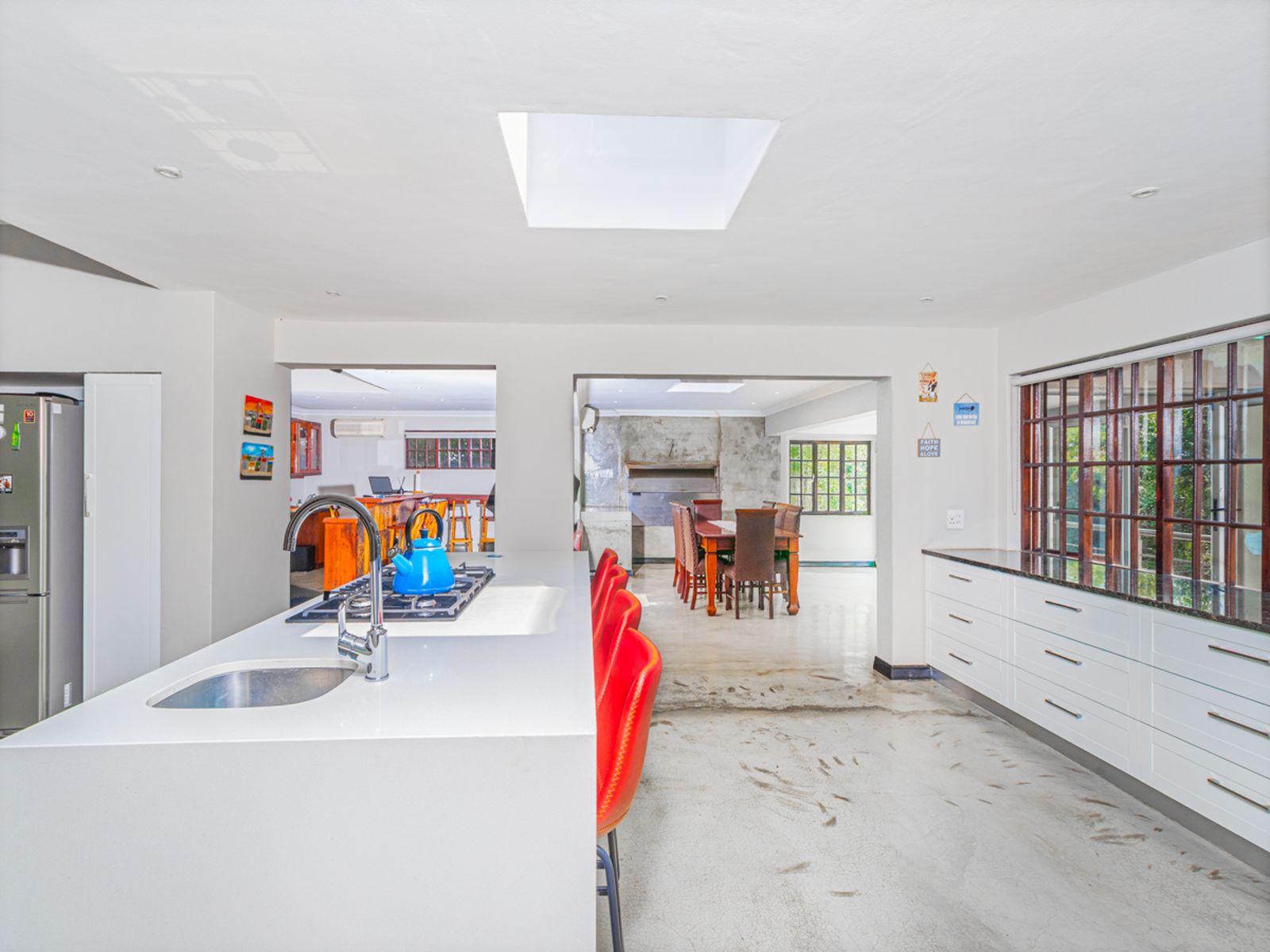 A gourmet kitchen that flows effortlessly into an enclosed braai and bar area overlooking the sparkling pool and landscaped garden.
