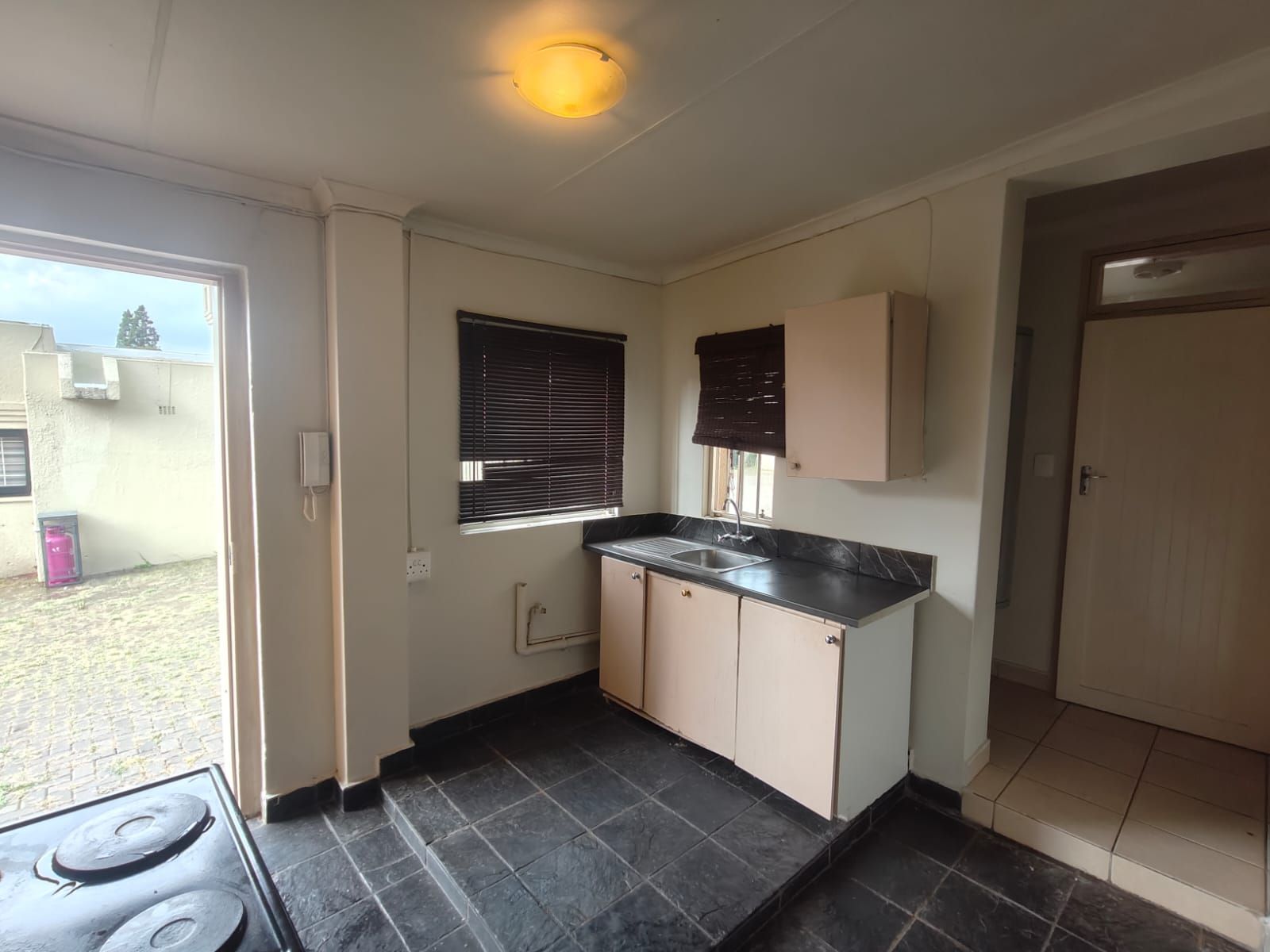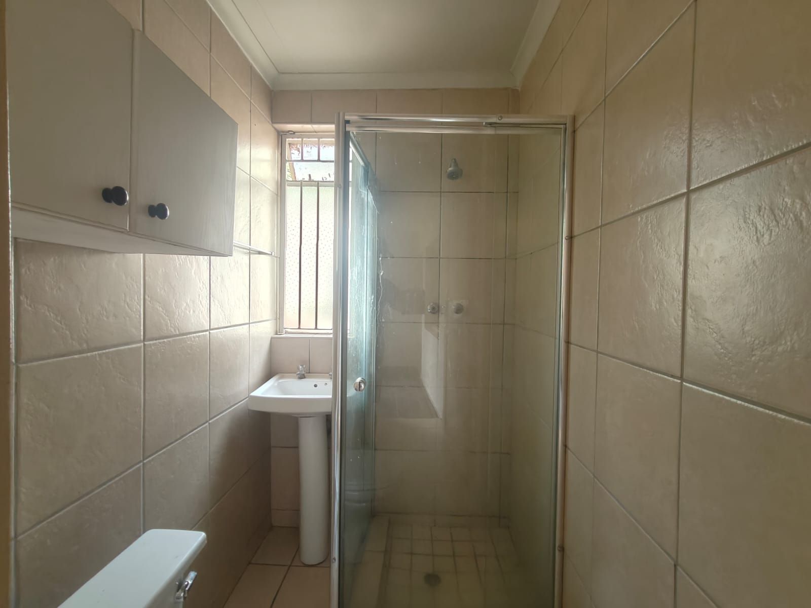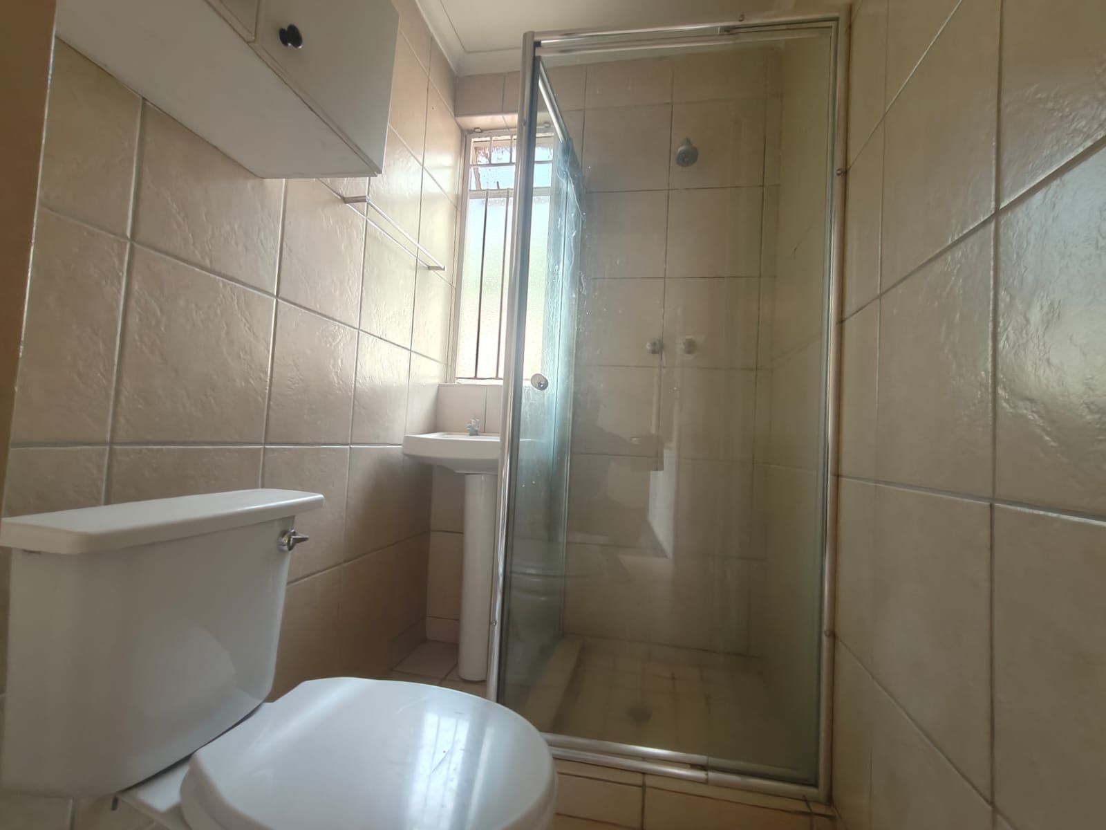 This neat one-bedroom, one-bathroom apartment offers comfortable and practical living. The unit comprises a kitchen, a separate lounge area, a bedroom, and a bathroom fitted with a shower, toilet, and basin.