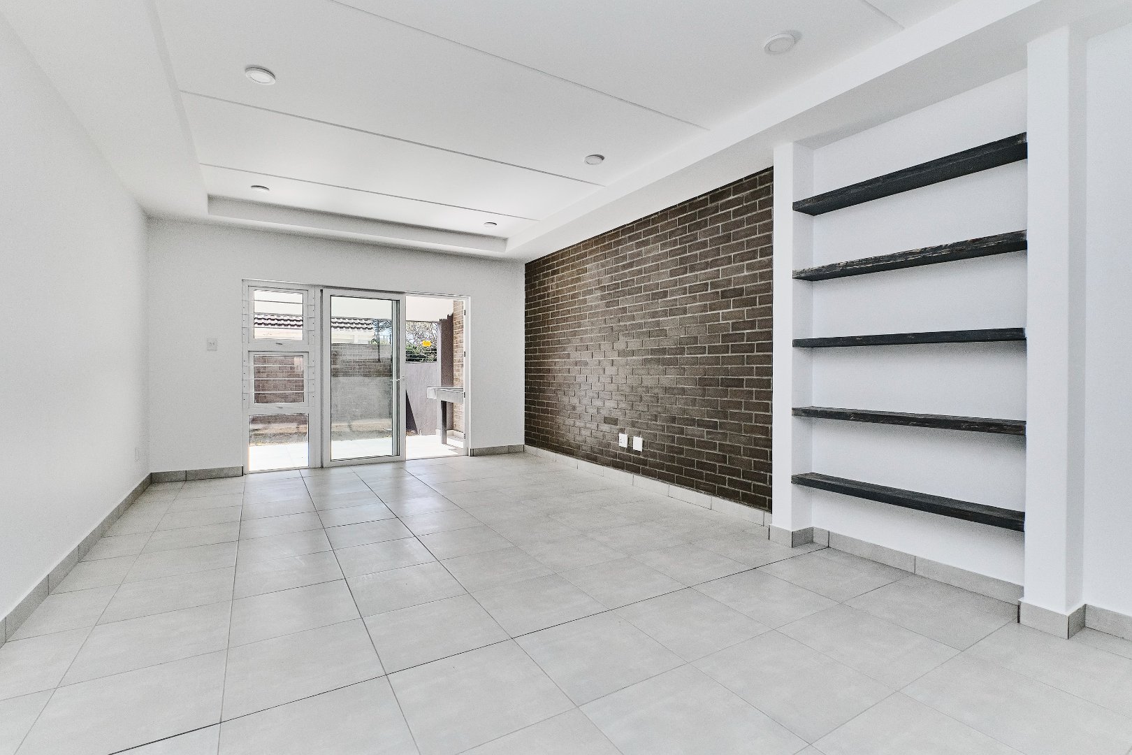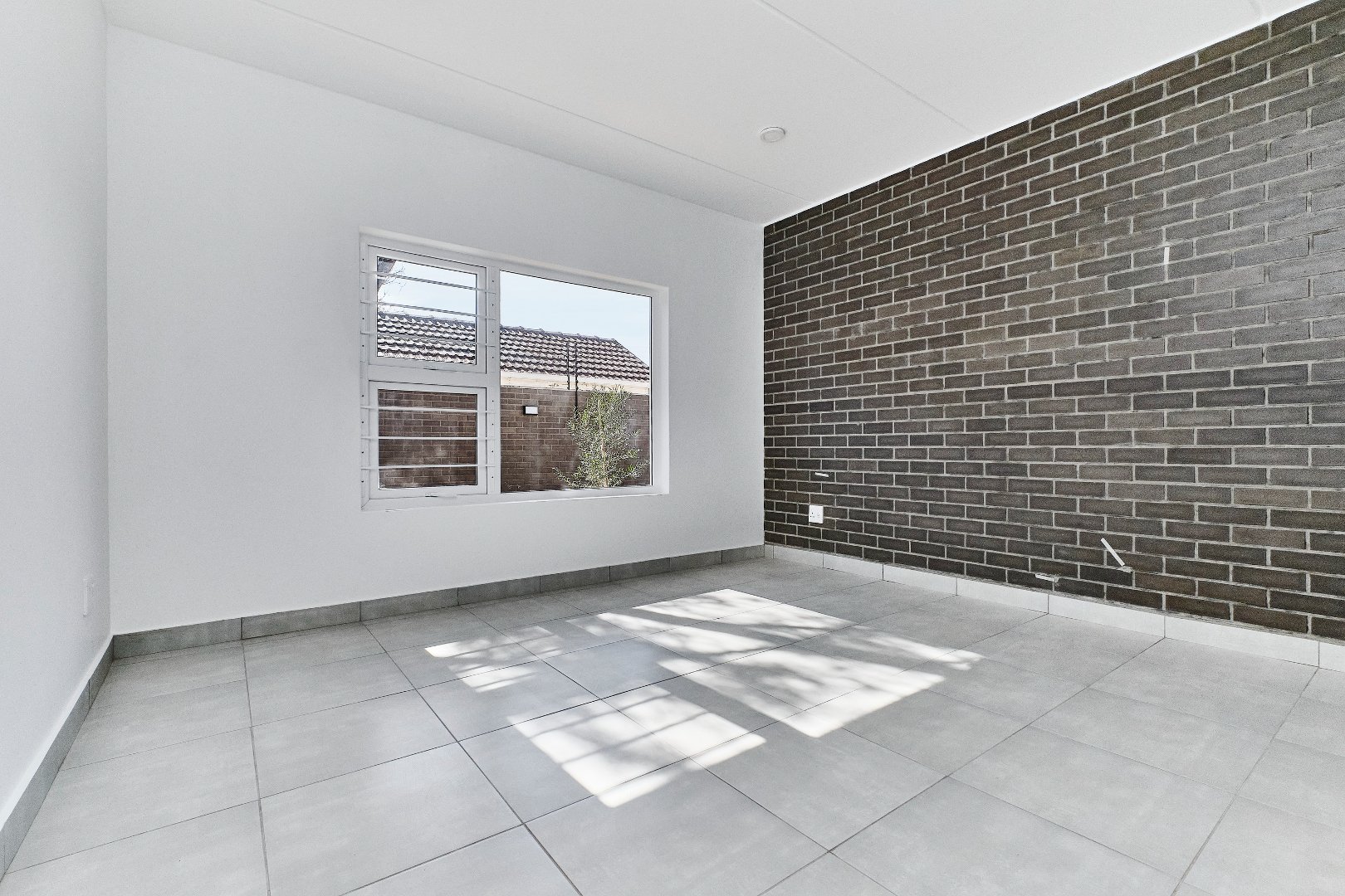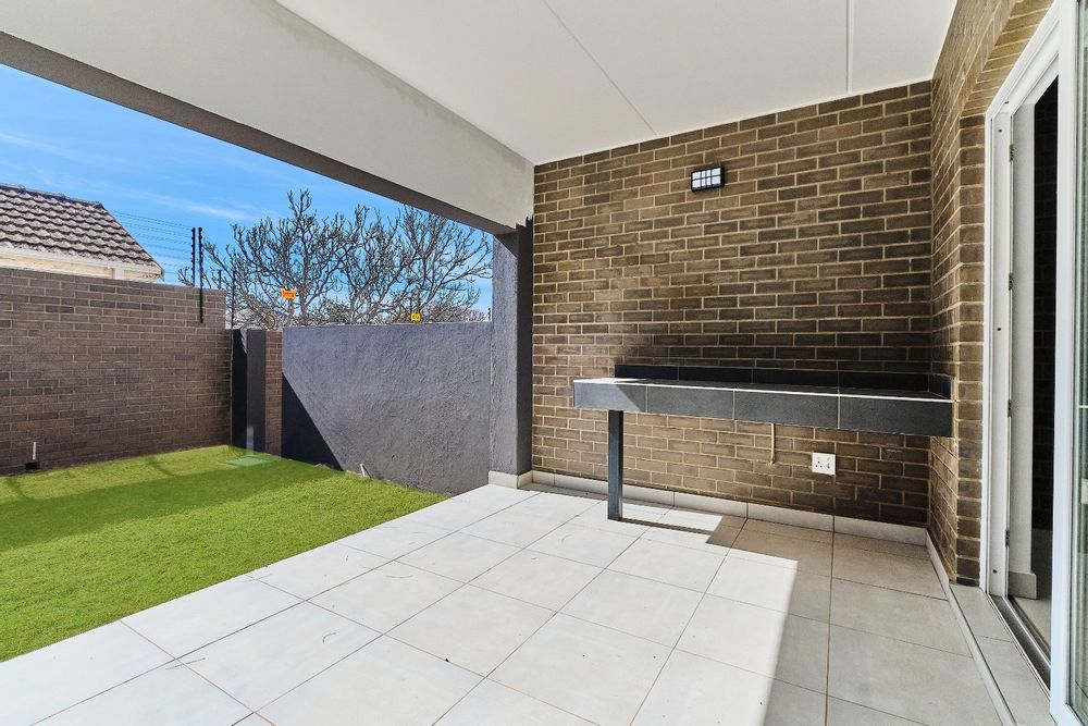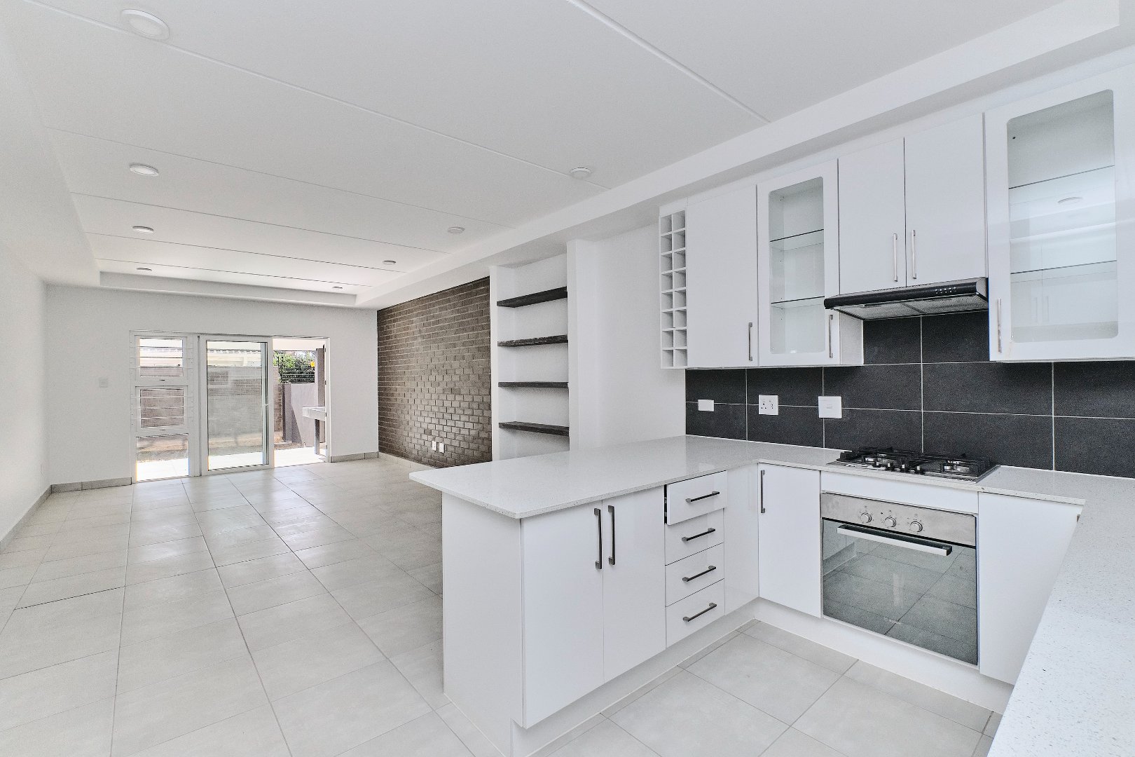 New development only 2 years young. Top-class finishes throughout. 2 spacious bedrooms with feature wall, 2 bathrooms (mes) open plan lounge/dining room leading to an ultra-modern kitchen complete with granite tops and gas stove. Fitting for 2 appliances plus space for a double door fridge. 105 sq meters under roof. Covered patio with a fitting for a gas braai leading to a spacious garden. Covered carport, pre-paid electricity, gas geyser, biometric access with excellent security. Pet friendly! Fibre ready. Walking distance to everything. Call Rosa now to book your view by appointment.