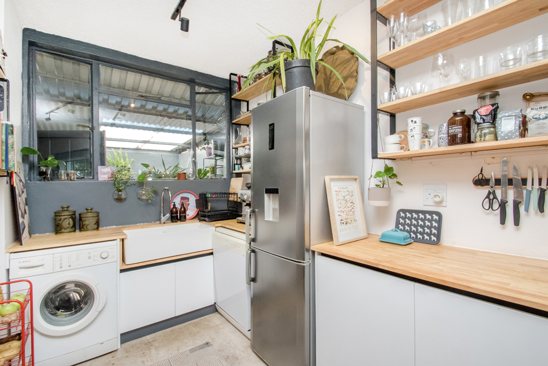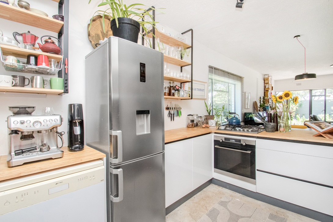 Upon entry, you’re welcomed by a cosy covered courtyard — the ideal spot to enjoy your morning coffee. Stepping inside, a tastefully renovated kitchen awaits, featuring a gas hob, ample cupboard space, and room for an undercounter appliance. A guest toilet is conveniently located near the front door.