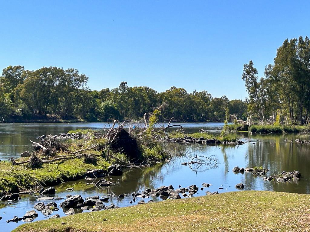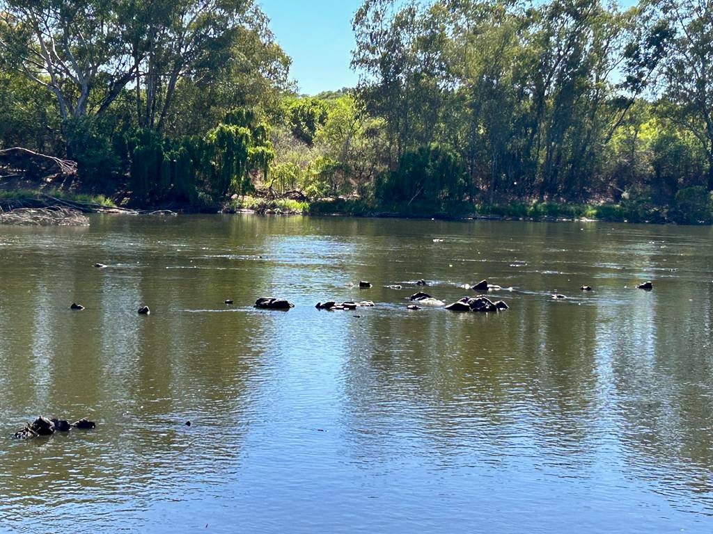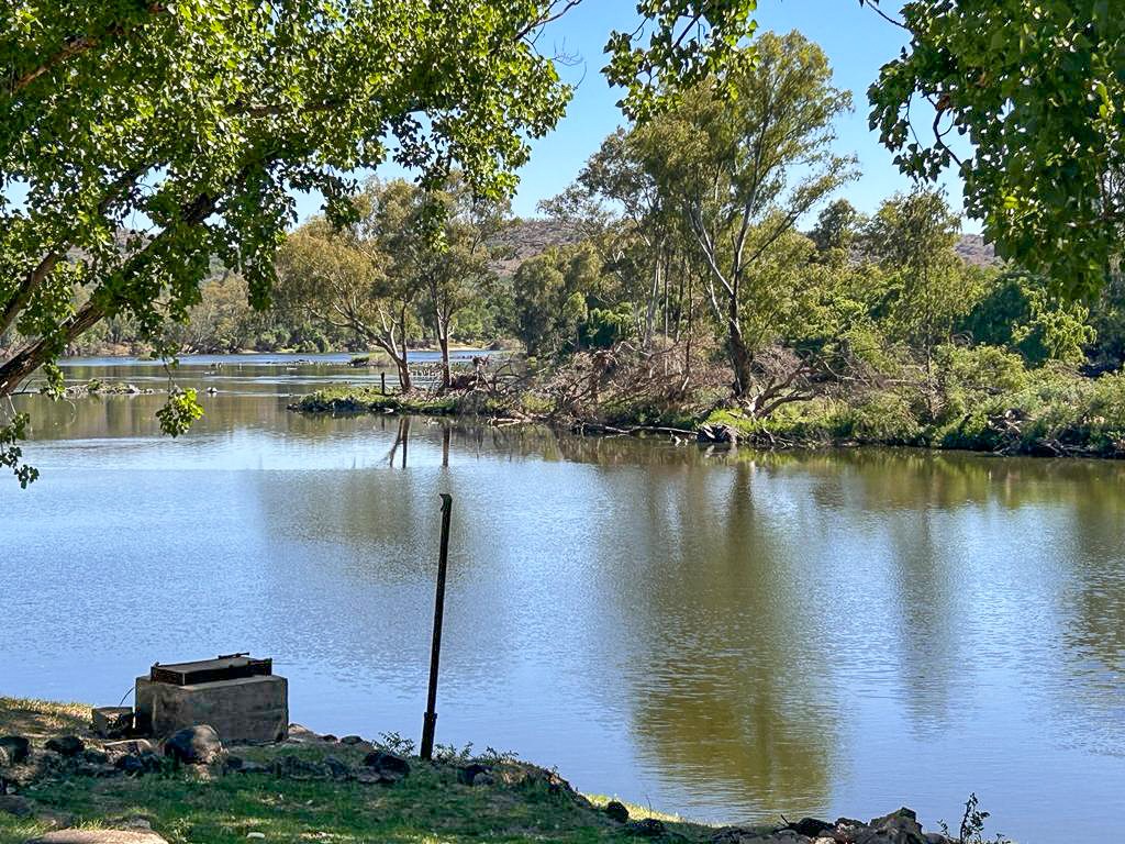 A separate main house with an additional flat provides privacy while still enjoying magnificent views of the river and surrounding hills. The property is equipped with a borehole, sprinkler system, and water rights from the Vaal River, currently registered to the seller.