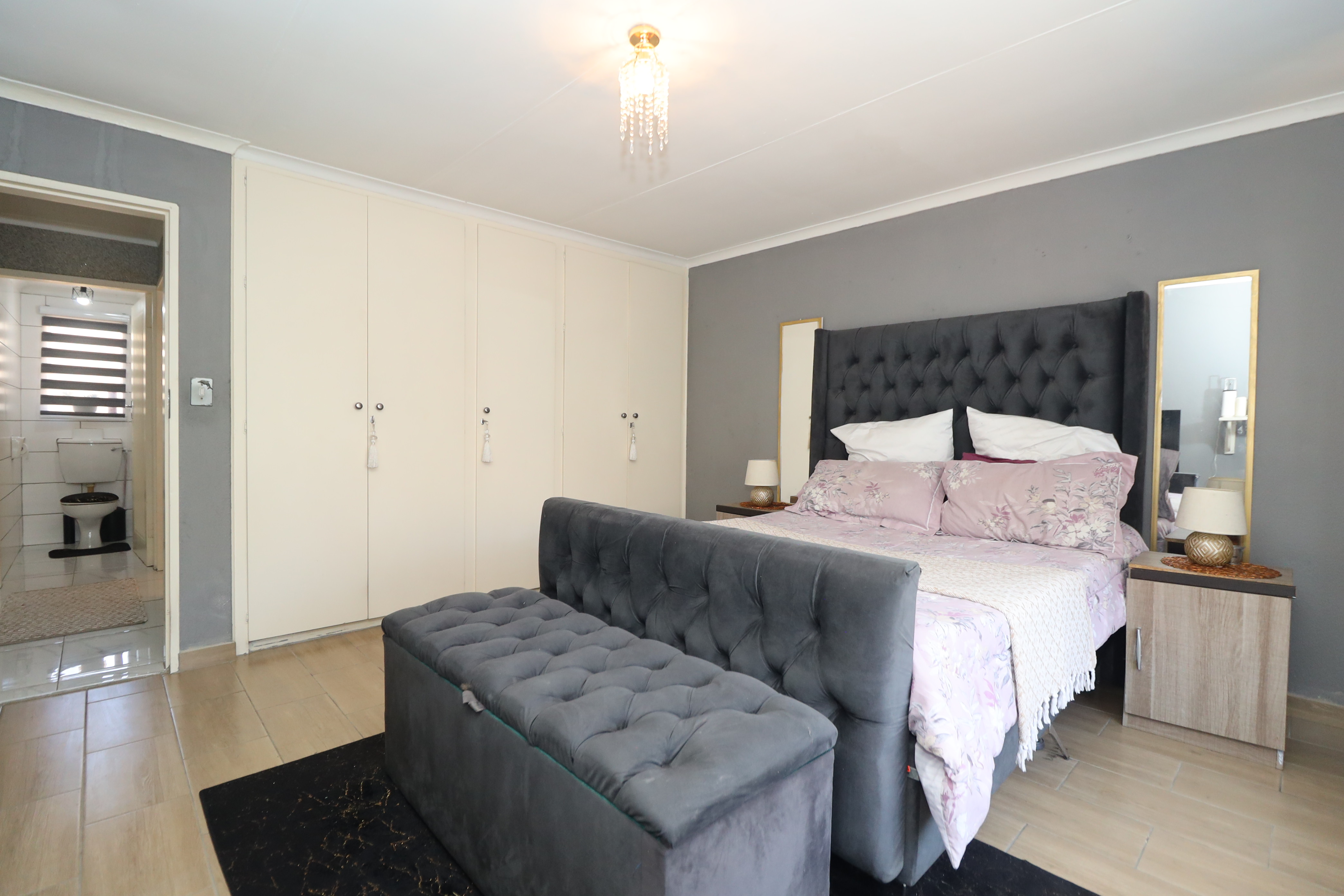 With two cozy bedrooms, this townhouse offers comfortable accommodations, complemented by a stylishly modernized bathroom. Residents will also appreciate the communal braai area within the complex, perfect for hosting get-togethers and enjoying the outdoors with friends.