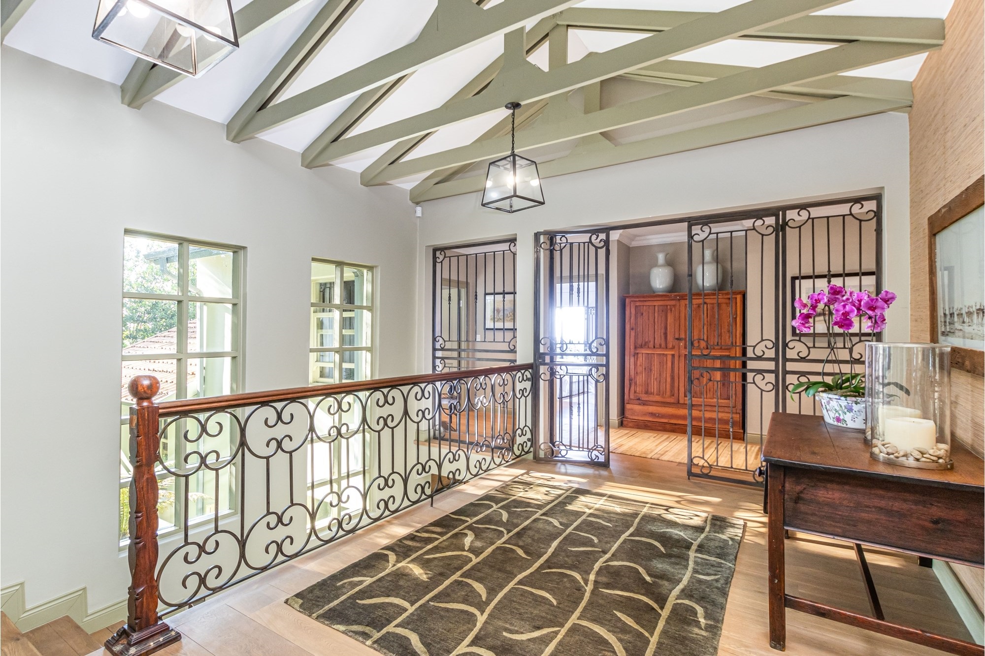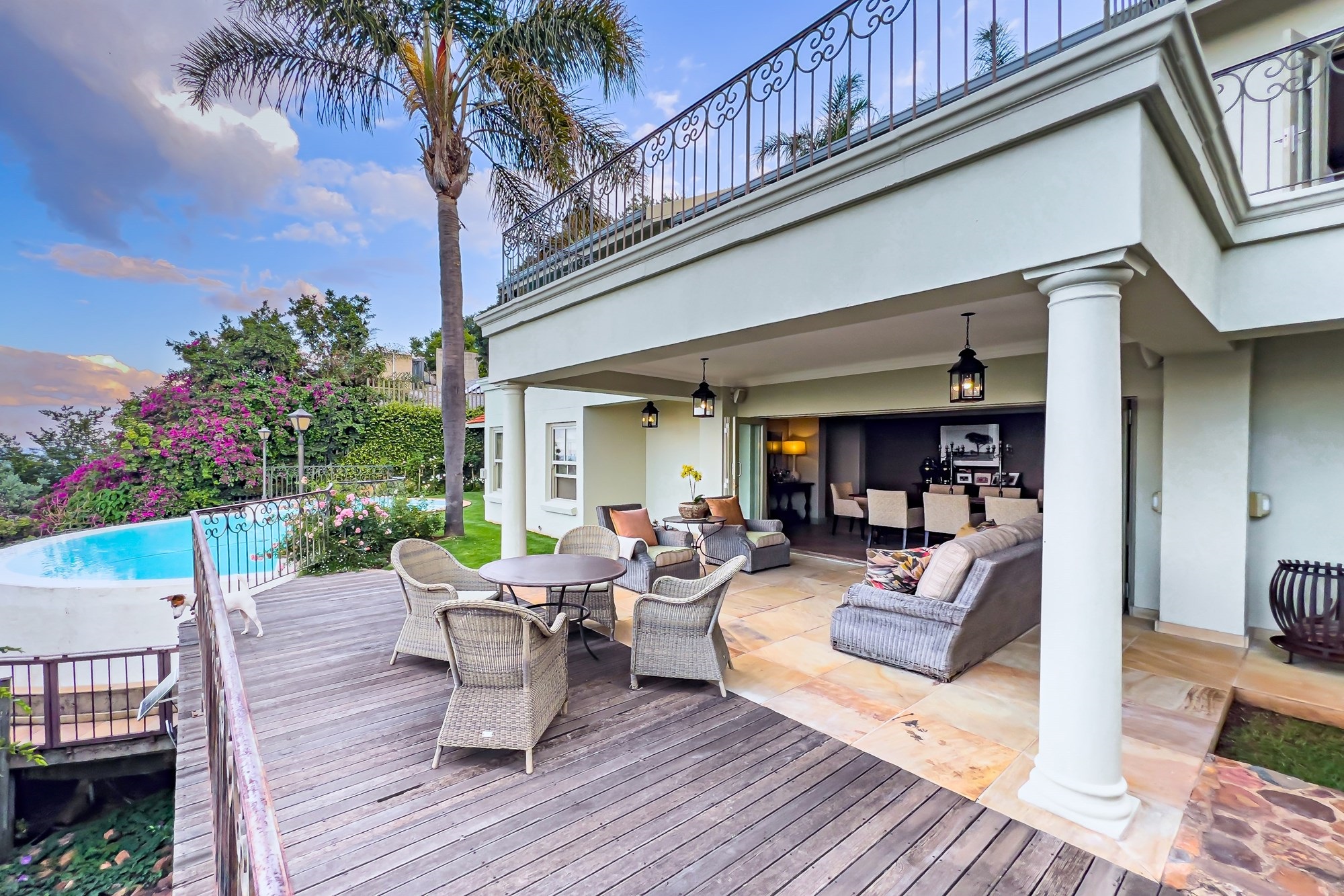 The living areas are expansive and welcoming, with an extra kitchen space, perfect for those who love to entertain. Step outside to your private oasis with a sparkling swimming pool and a spacious terrace, complemented by a braai and patio area for memorable gatherings. The balcony offers breathtaking views, further enhancing this home`s appeal.