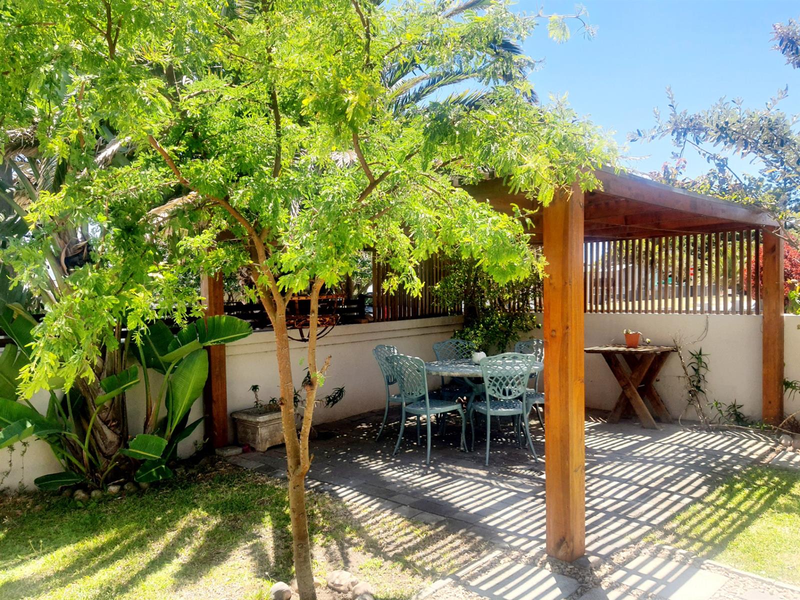 Outside, the property offers a generous garden space with plenty of room to breathe, unwind, or let your imagination run free. Whether you’re dreaming of lush greenery, a sunny reading corner, or a quiet area for morning reflection, the garden embraces it all. The setting itself adds to the charm — tranquil, private, and perfectly positioned to offer a feeling of being tucked away without ever being far from Mossel Bay’s beautiful coastal lifestyle.