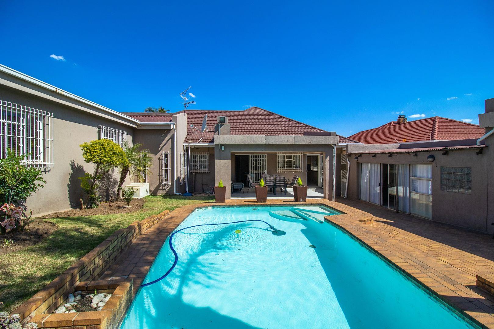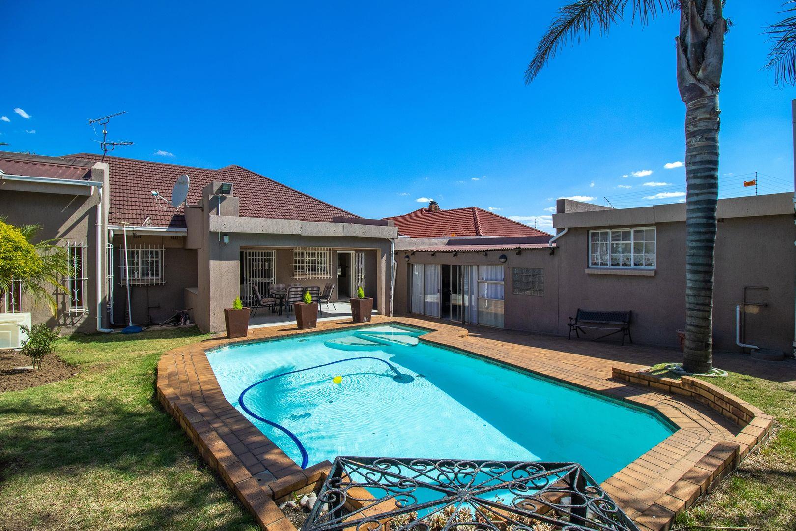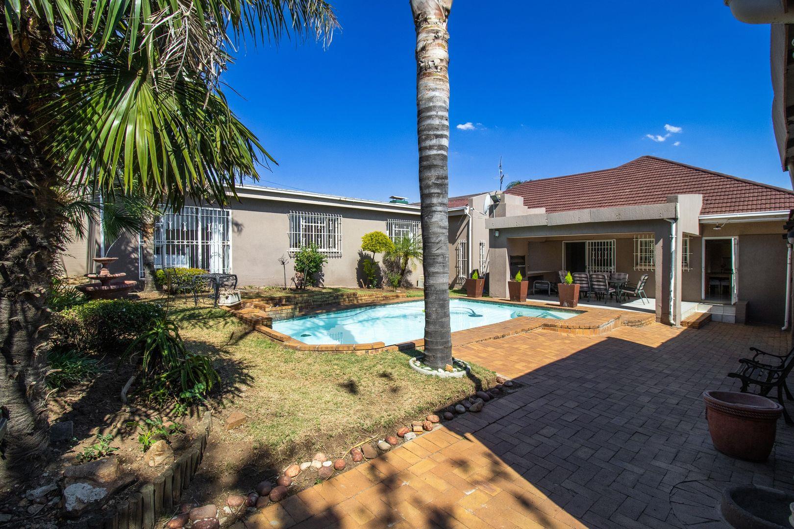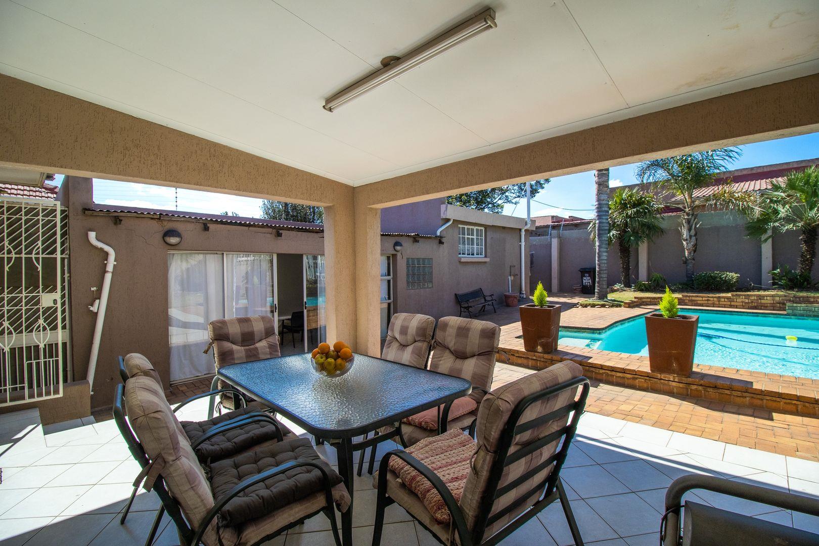Enjoy outdoor living on the covered patio with built-in braai, overlooking a sparkling swimming pool — perfect for summer days and entertaining guests.