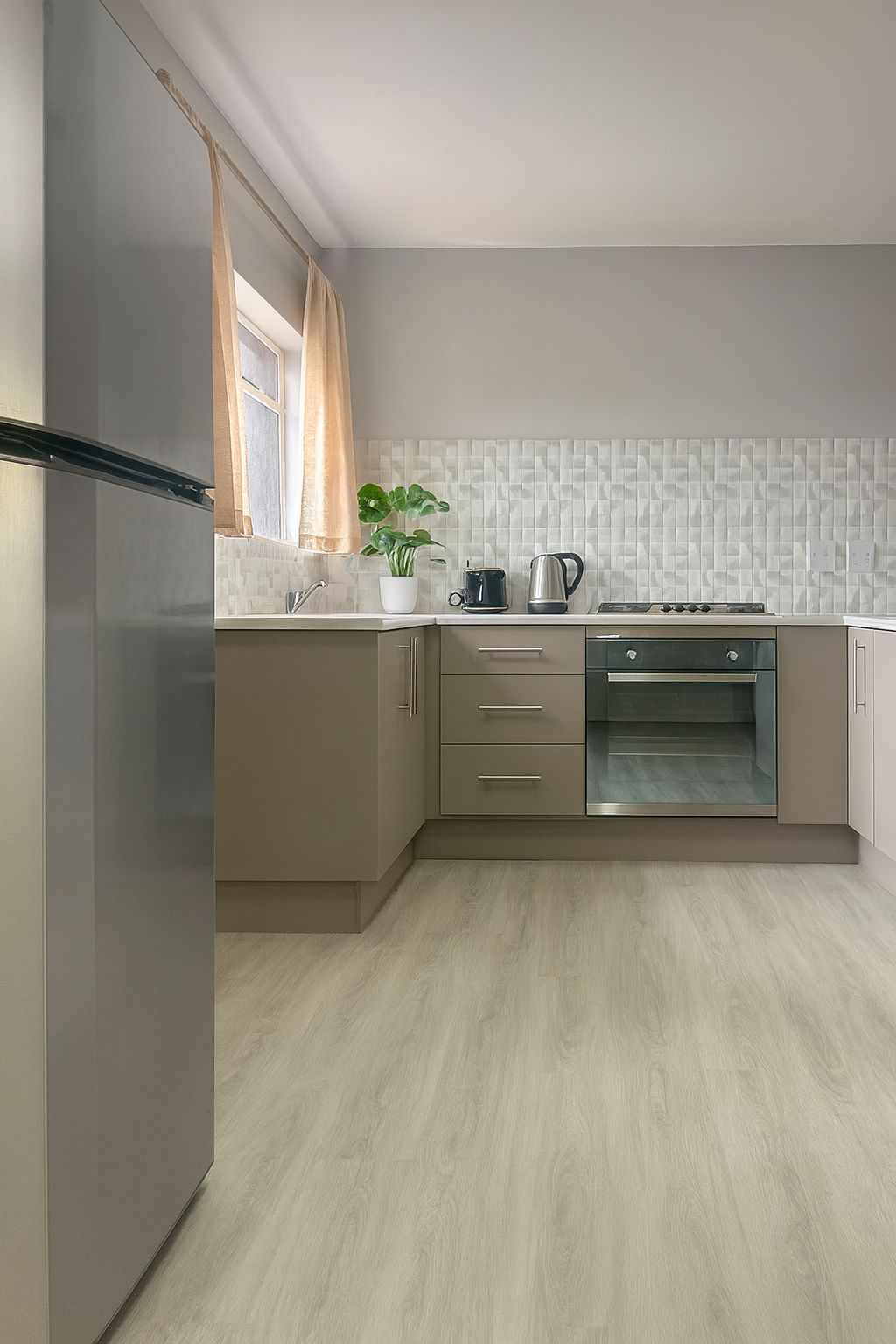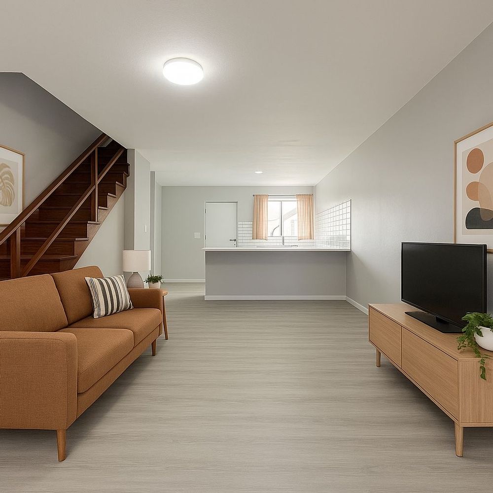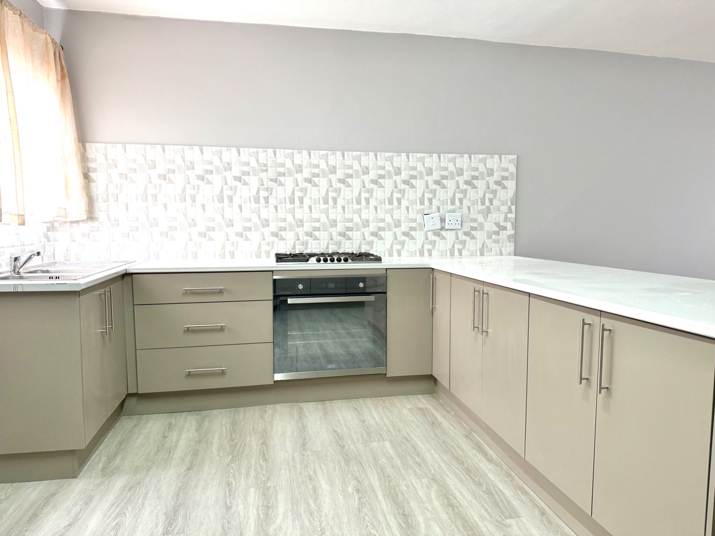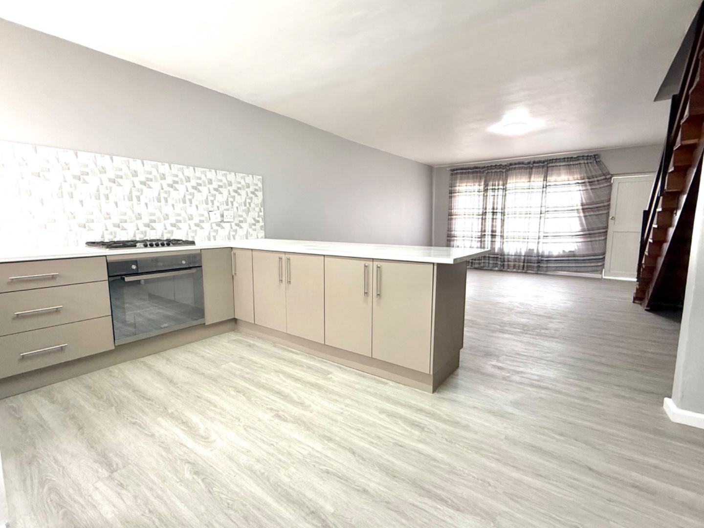 Freshly modernized trendy open plan unit with new fitted kitchen on lovely vinyl flooring downstairs.