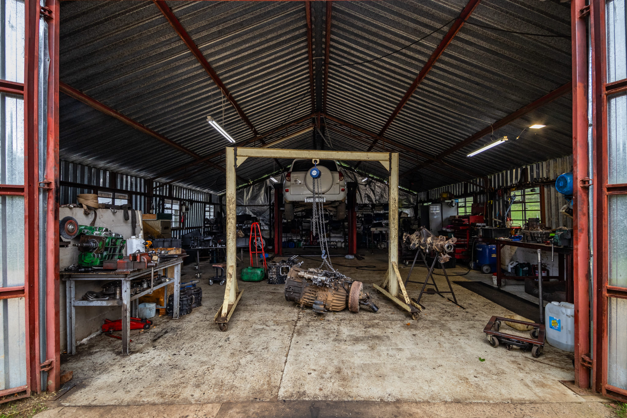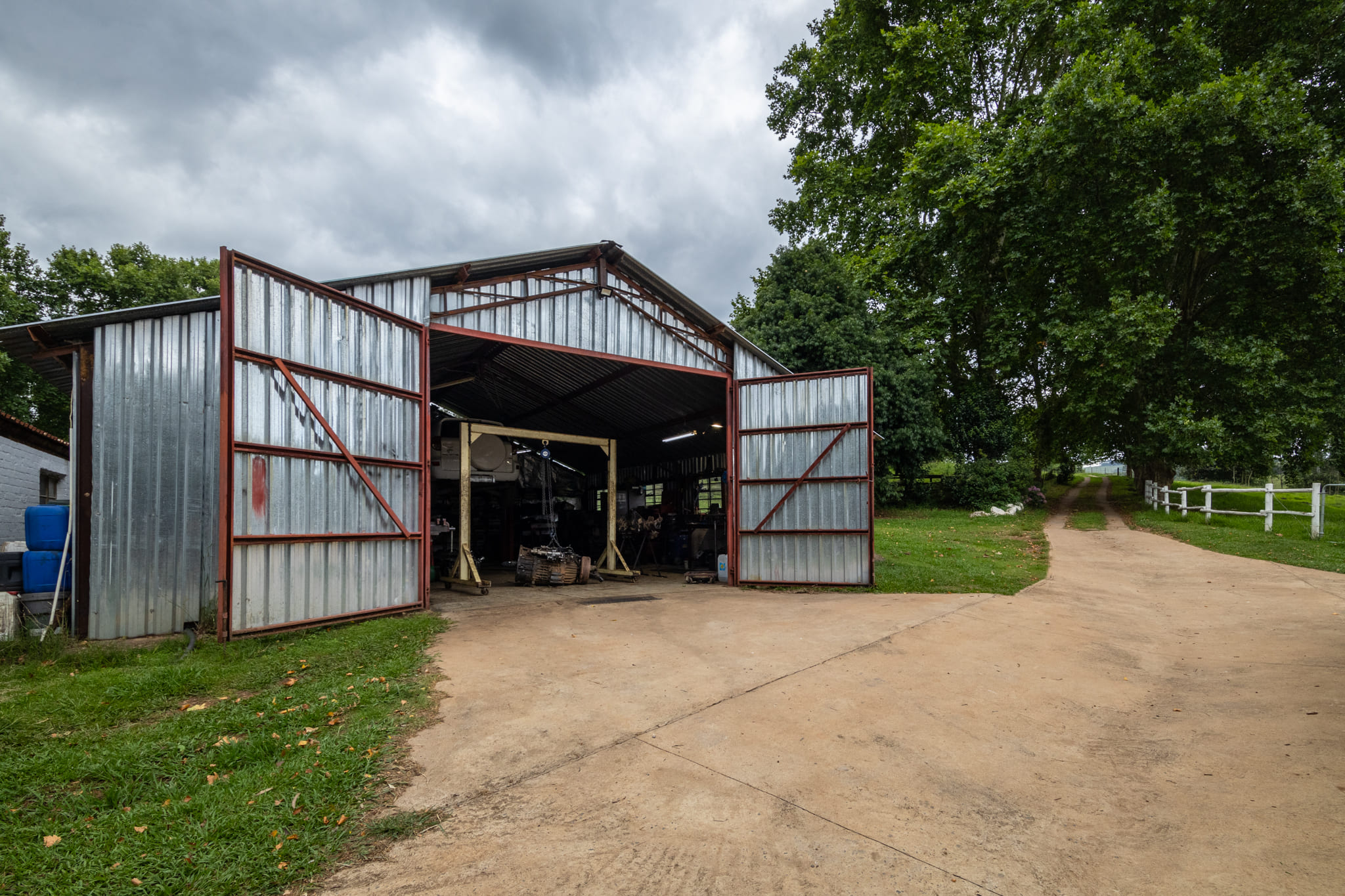 The primary outbuilding is a fully enclosed 144 m2 steel-structure workshop with a concrete floor and a lock-up tool room. Attached to this building is domestic accommodation with amenities for on-site staff.