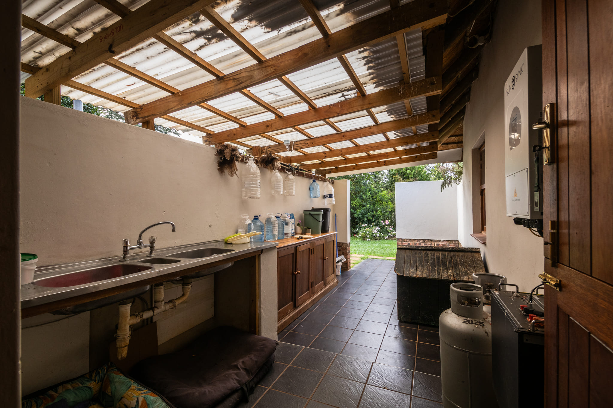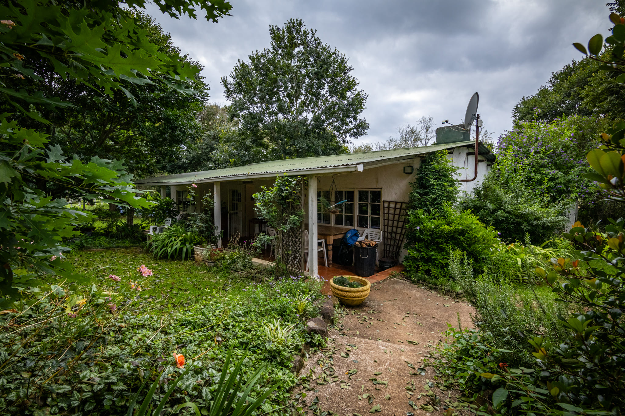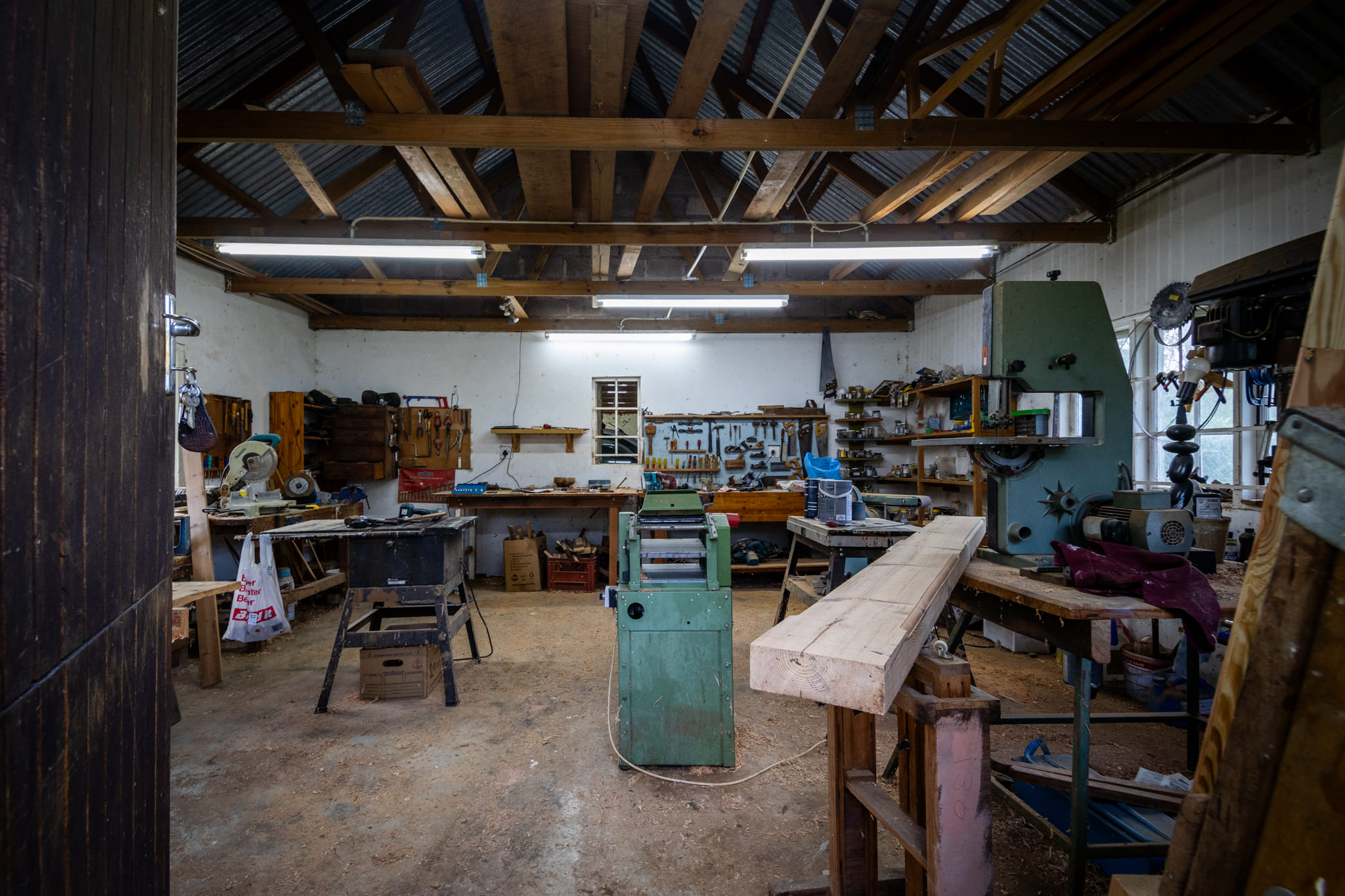 A separate 50 m2 wood workshop is well suited to hobby or practical use. Tools are negotiable. Four-bay undercover parking adjoins this area.