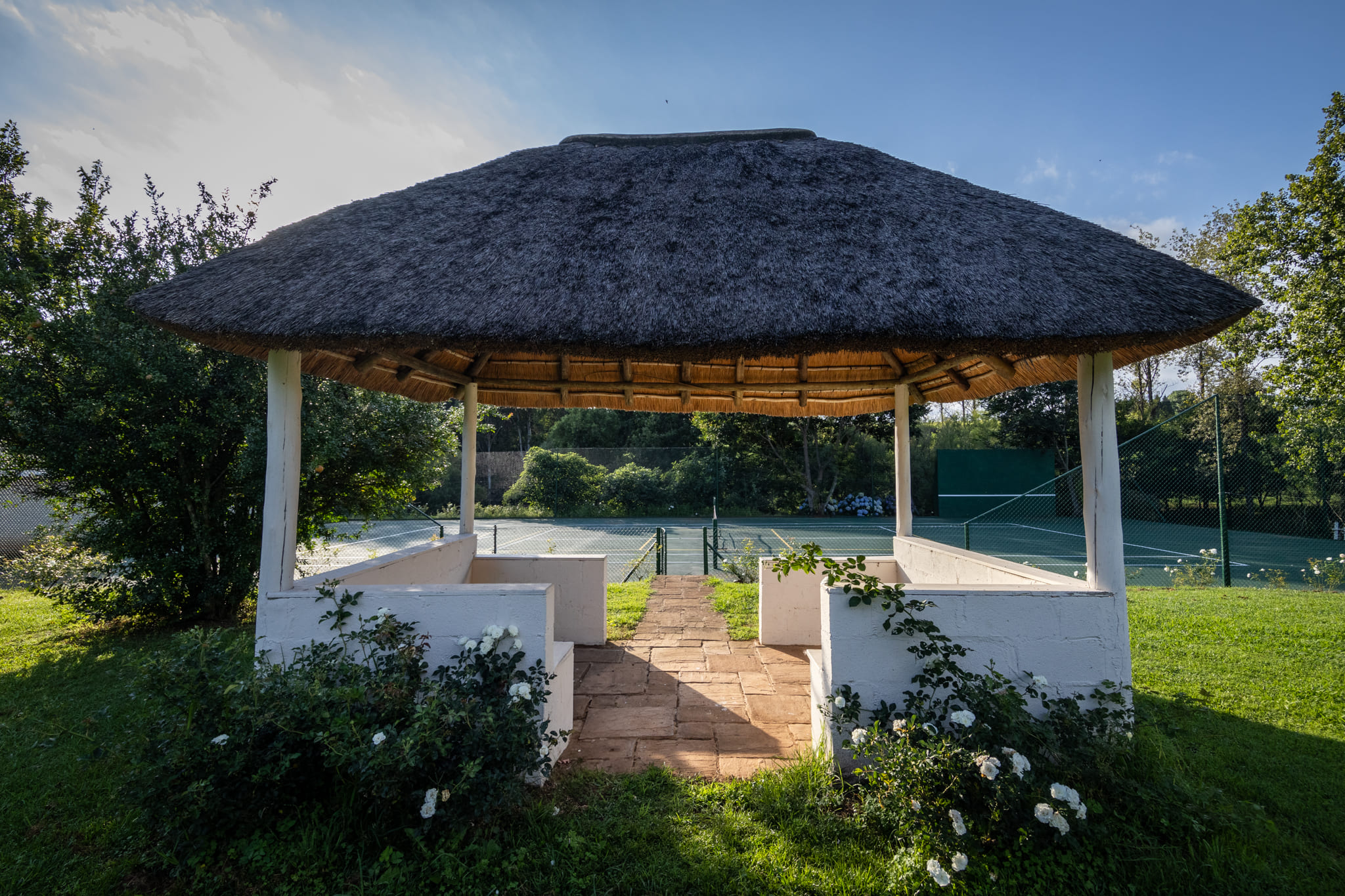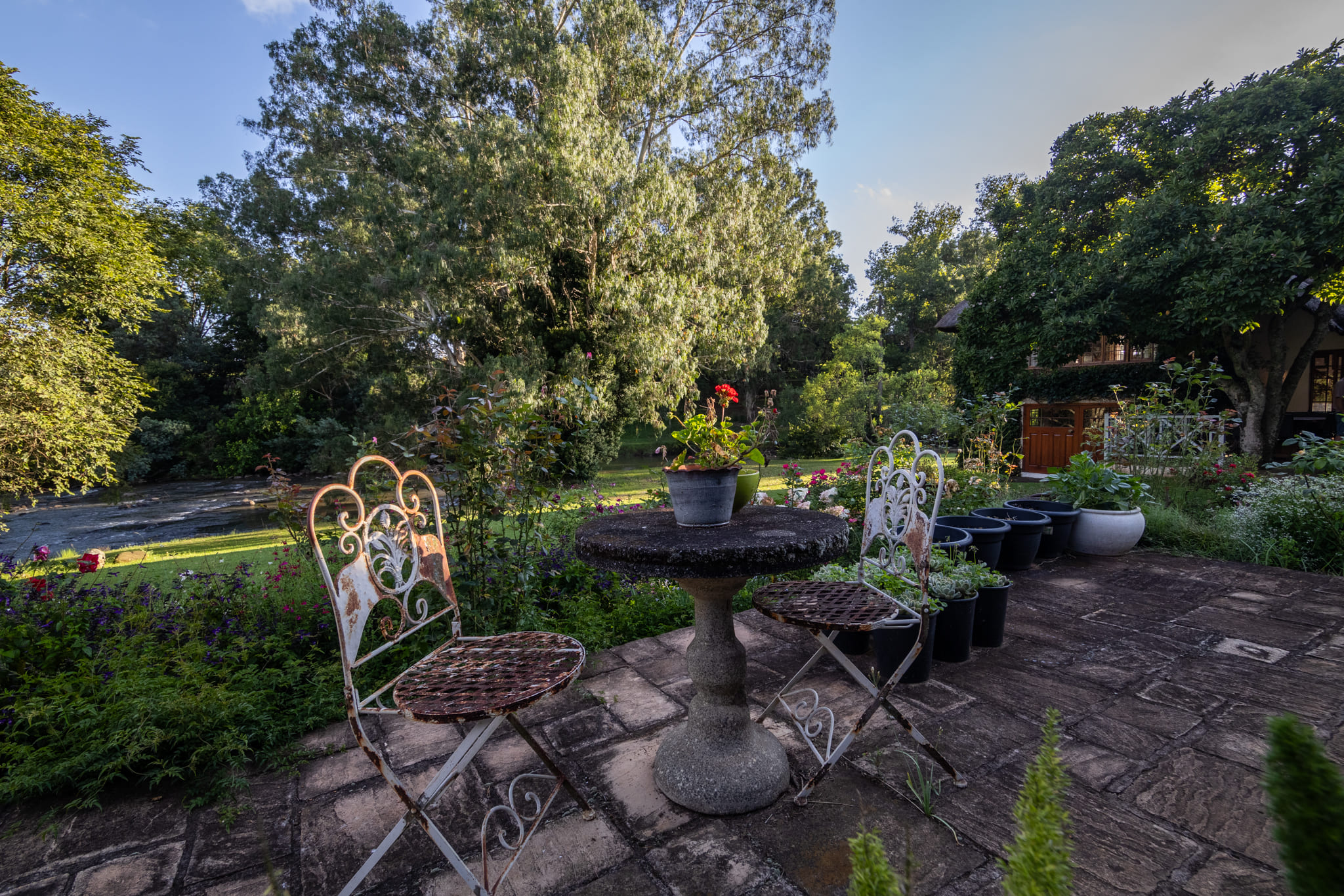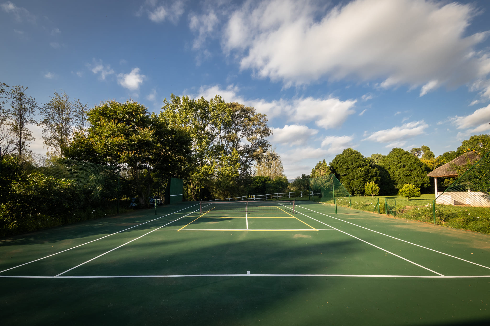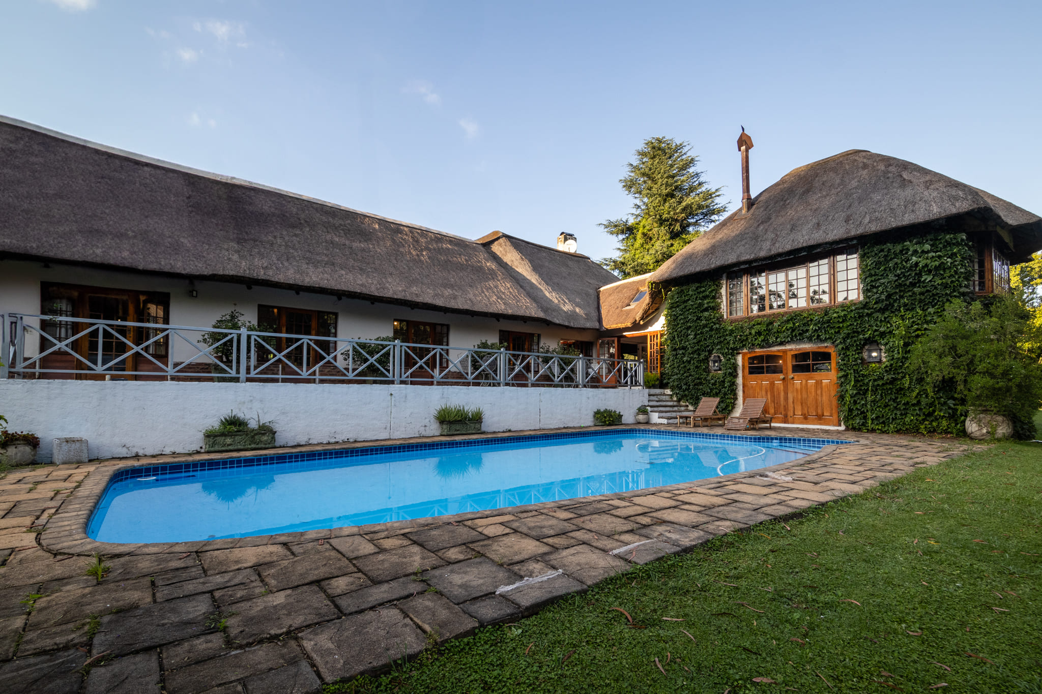 Outdoor features include a refurbished swimming pool overlooking the river and a combined tennis and pickleball court. The irrigated kikuyu pastures are productive and well maintained, supported by the extensive irrigation infrastructure.