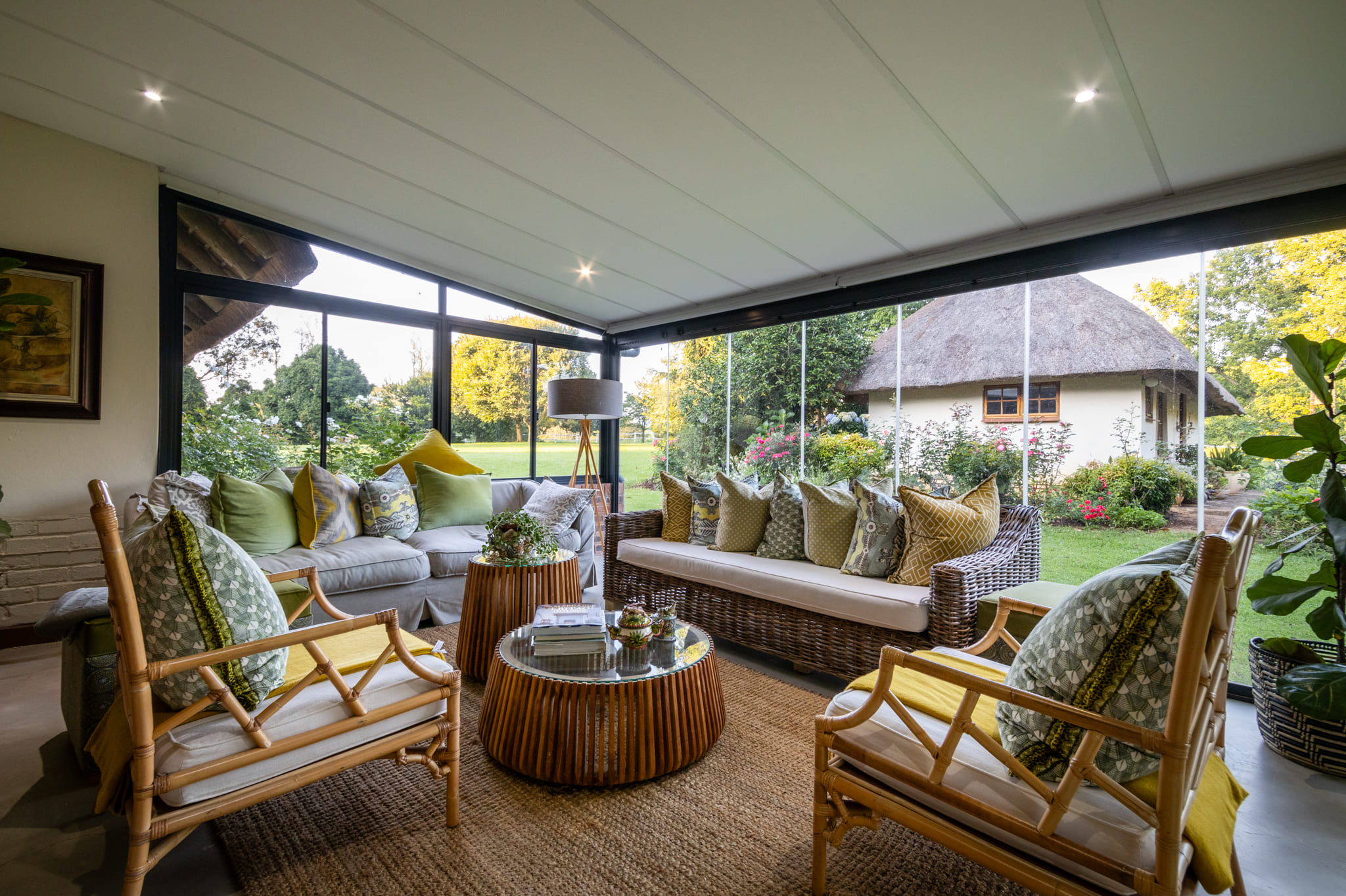 Two cottages add flexibility for extended family, rental income or staff accommodation.