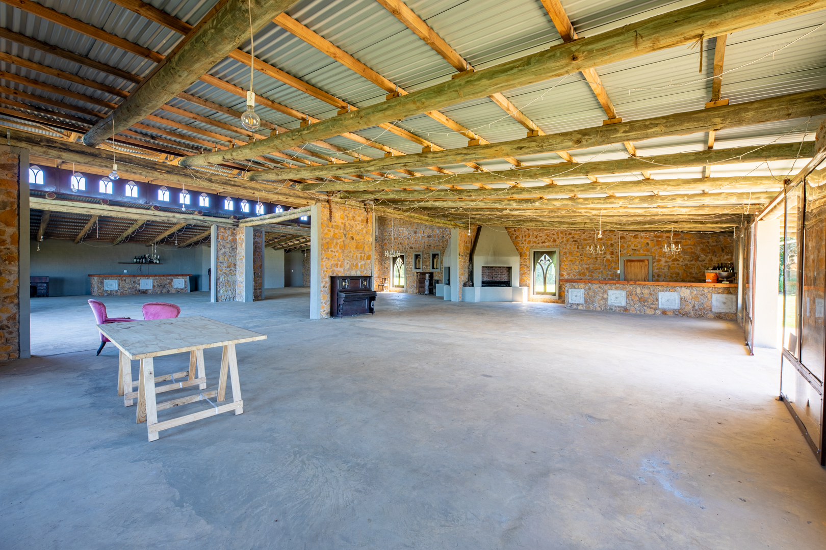 There is also a large comprehensive wedding venue that can hold 260 people. Equipped with ablutions, a large kitchen and prep area. A chapel that can comfortably seat 140 people. Staff accommodation with 4 bedrooms. To top it off there are 2 dams, a solar borehole and the farm currently has stock of 150 sheep on the land.