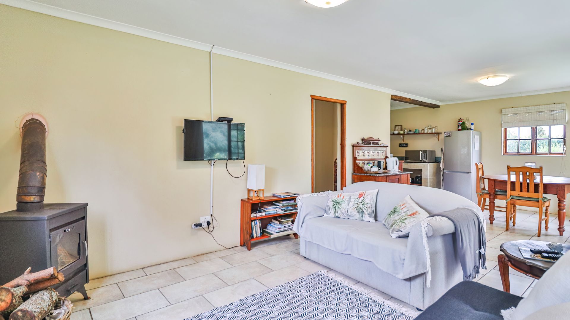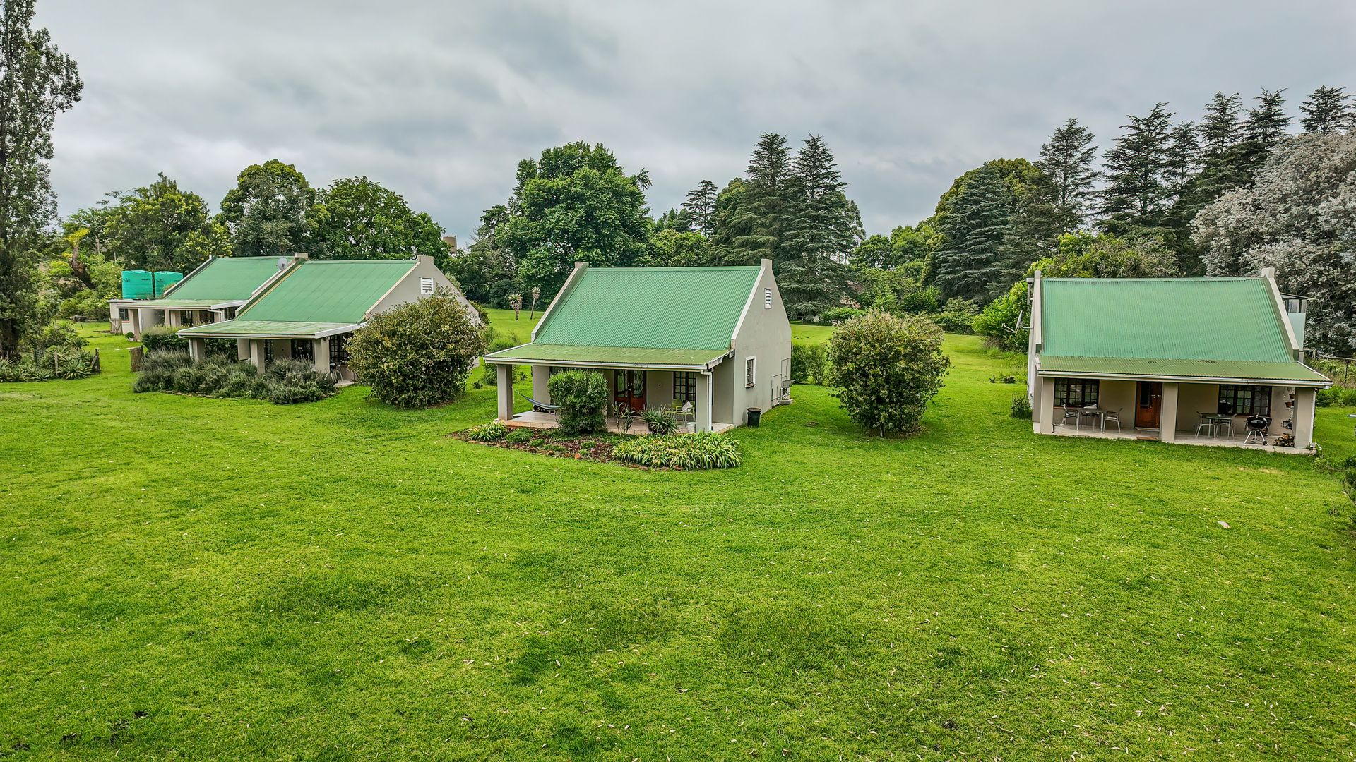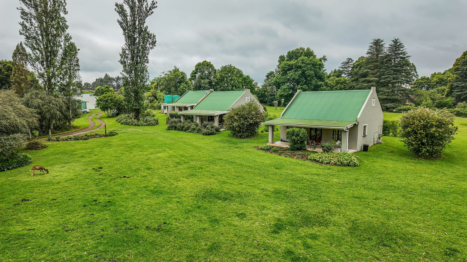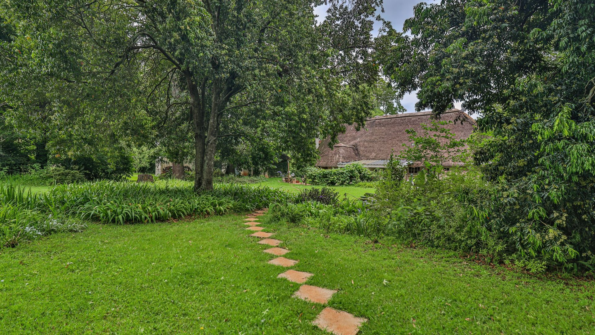 The thatched main house is perfectly situated away from the cottages and farmhouse. The charming home offers two bedrooms and two bathrooms, an open plan kitchen, lounge, dining area leading into an expansive entertainment area, overlooking the lawns and garden. The office can also be a converted to a third bedroom if required