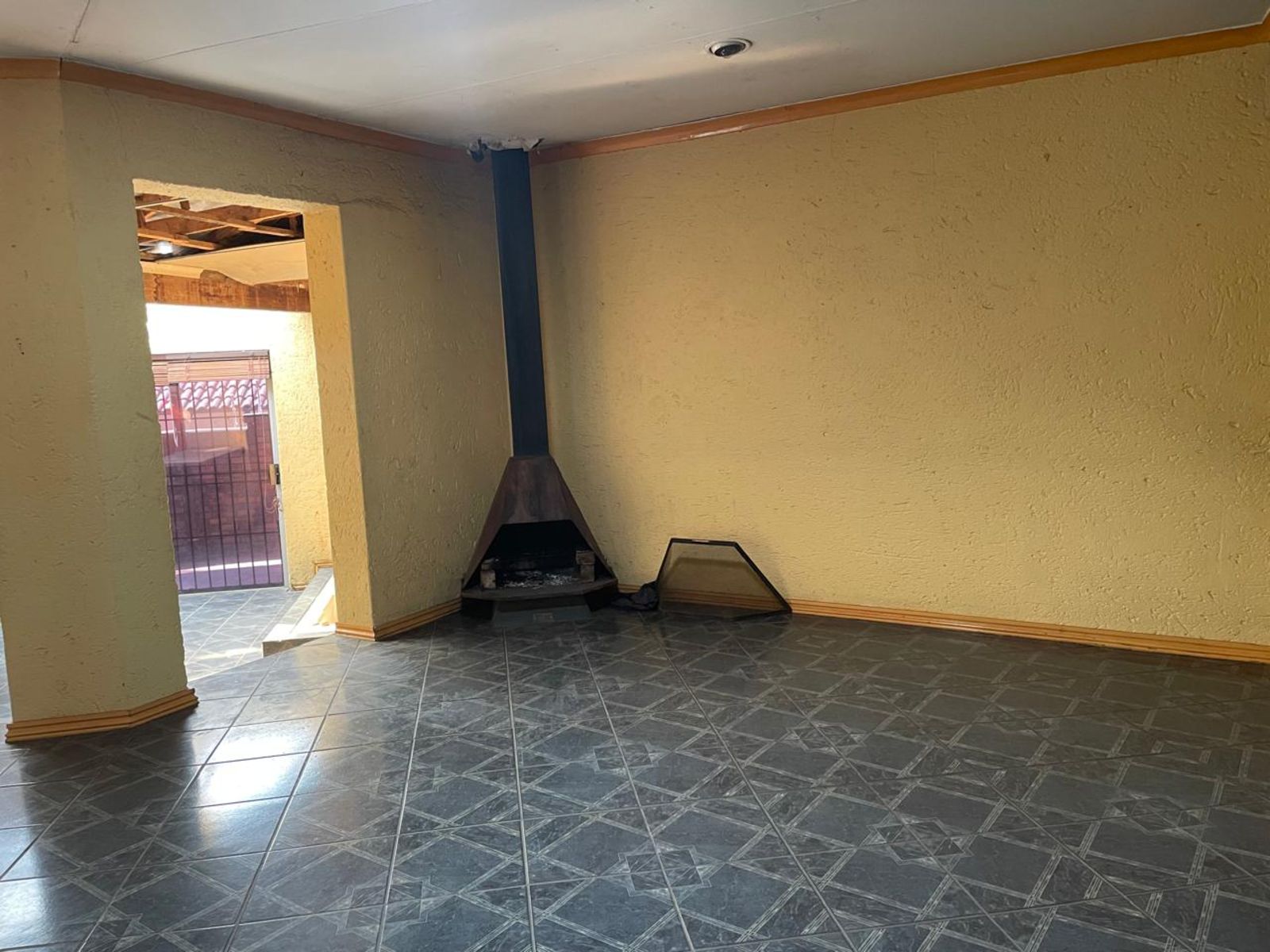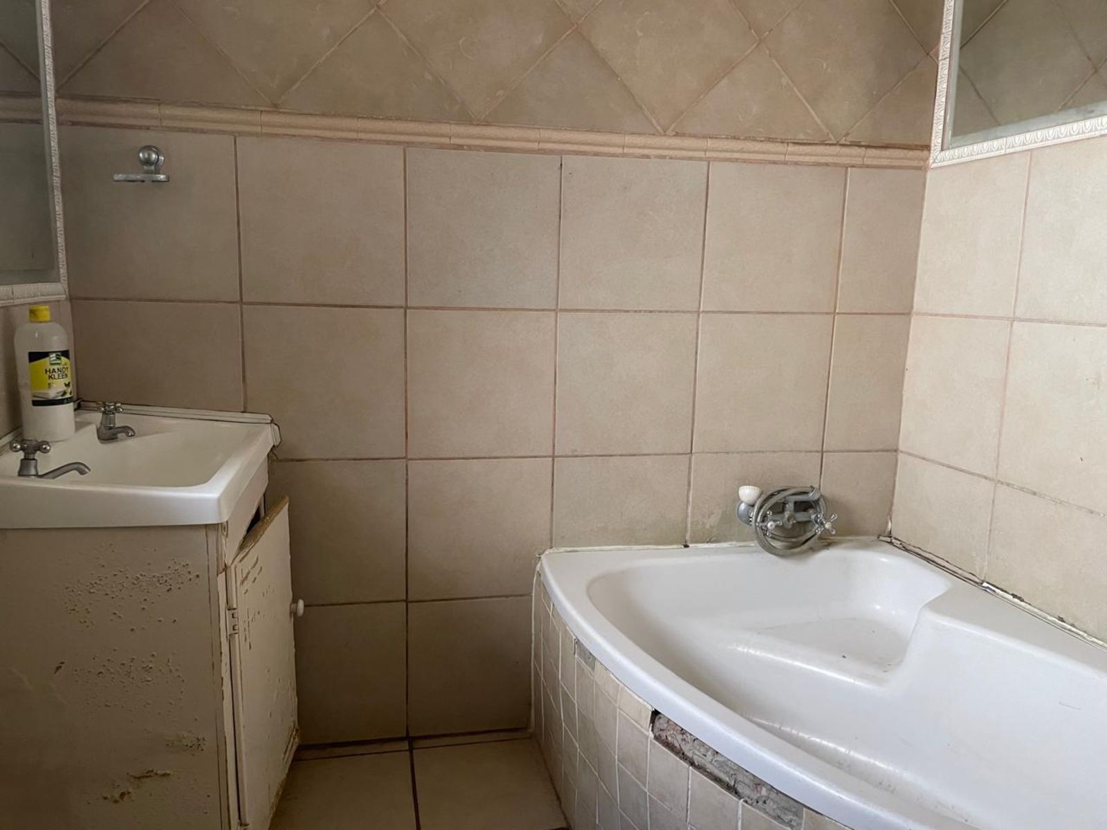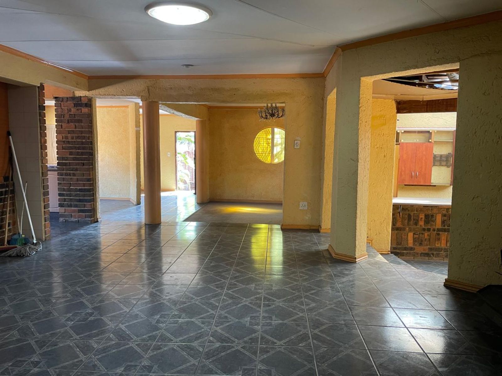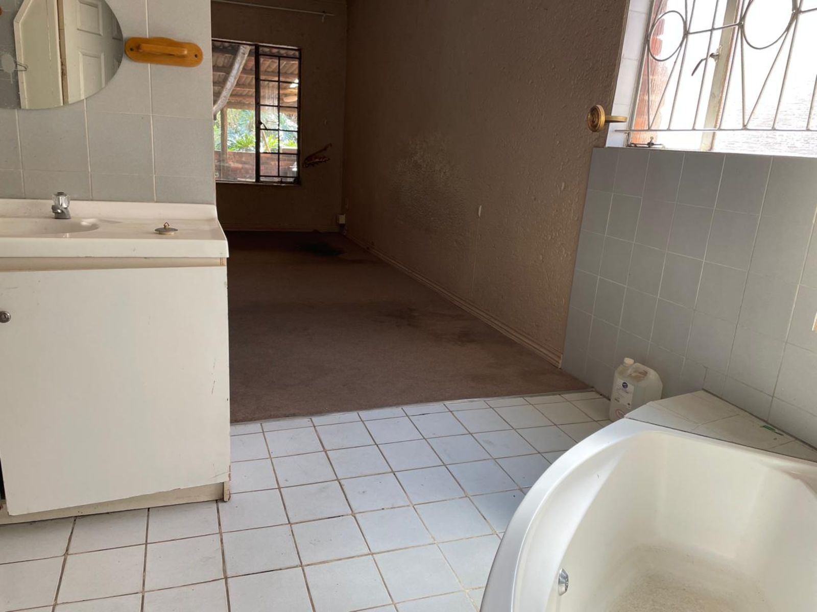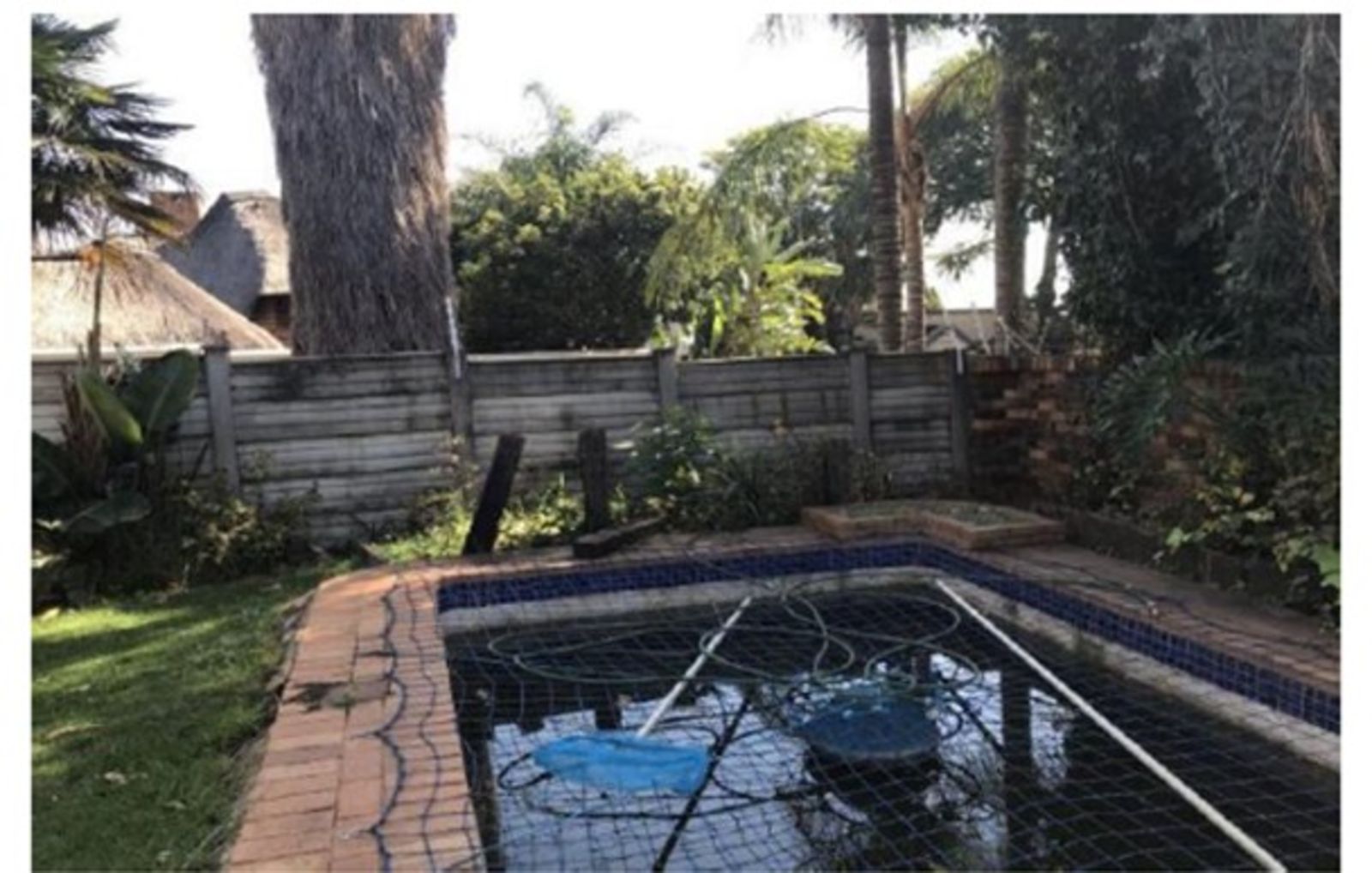 LARGE FAMILY HOME NEWLY RENOVATED, OFFERING 3 FULL BEDROOMS, ALL BUILT-IN CUPBOARDS. THE MAIN BEDROOM HAS AN EN-SUITE BATHROOM AND A LARGE WALK-IN CLOSET. THE 2nd BATHROOM IS SHARED BY THE OTHER 2 BEDROOMS. THE LOUNGE IS SUNKEN WITH A DINING AREA; THE KITCHEN HAS ENOUGH CUPBOARD SPACE, AND APPLIANCES ARE IN PLACE. COMPLETE WITH SCULLERY AND CORNER PANTRY. THE DINING AREA LEADS DIRECTLY INTO THE GARAGE. THE INDOOR ENTERTAINMENT AREA HAS A BUILT-IN BAR AND JACUZZI. A PATIO WITH BUILT-IN BRAAI. A SWIMMING POOL STAFF QUARTERS