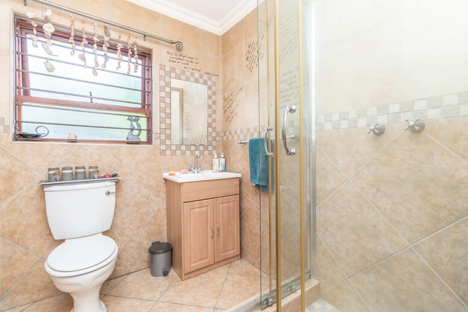 At the heart of the home lies a modern, well-equipped kitchen with an adjoining scullery. This chef's delight boasts ample space for multiple appliances, making meal preparation a pleasure. The open-plan interior is designed for contemporary living, providing a seamless flow from the kitchen through the dining area and into the lounge. Here, family members can enjoy sociable interactions while their favorite TV programs play in the background.