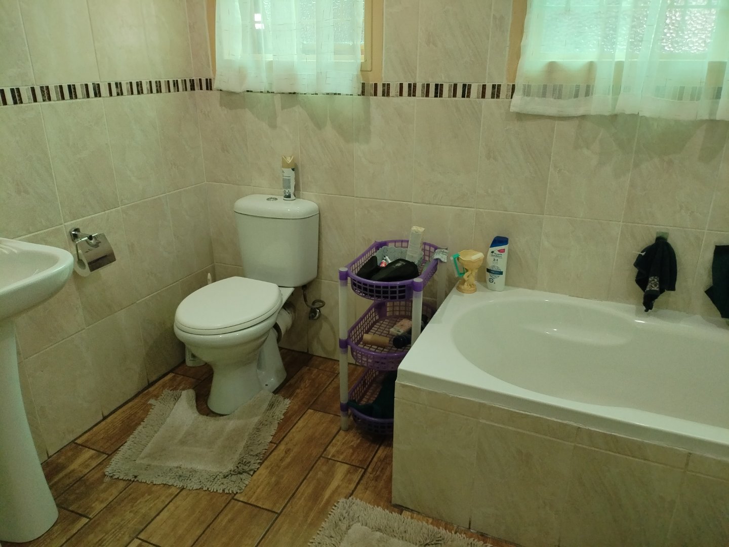 - Big Guest Bathroom consisting of shower/bath with shower hose/basin/toilet