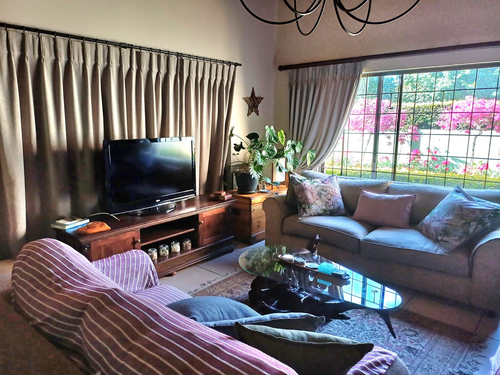 Surrounded by lush green gardens on three sides, the property is a peaceful haven. The spacious lounge is a highlight, featuring large windows that frame spectacular, uninterrupted views of the Outeniqua Mountains - a perfect spot to relax and unwind.