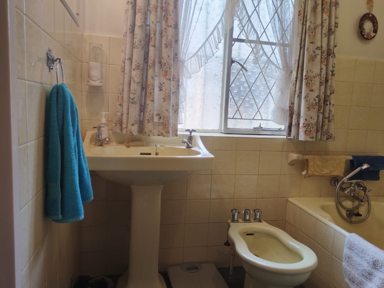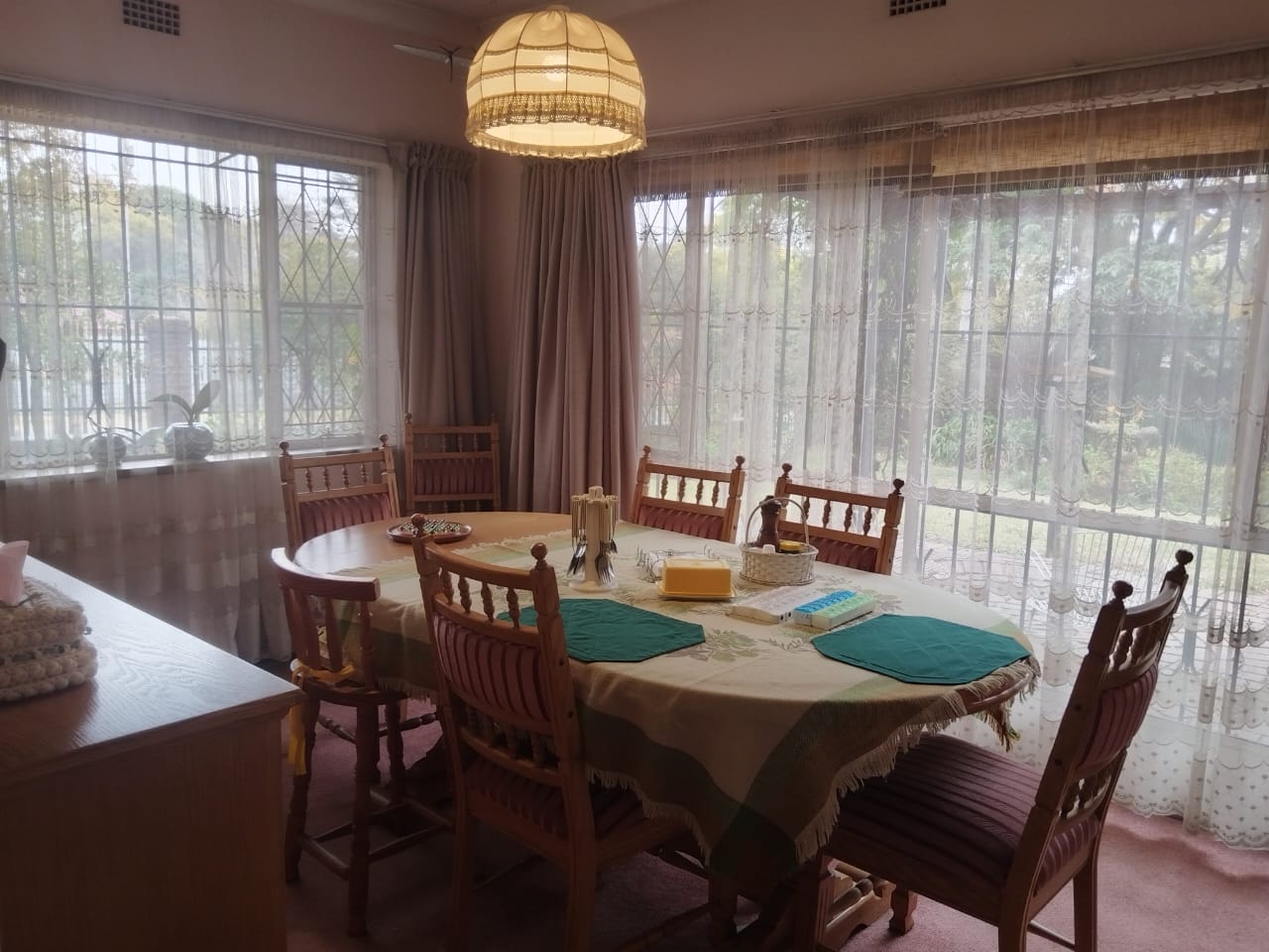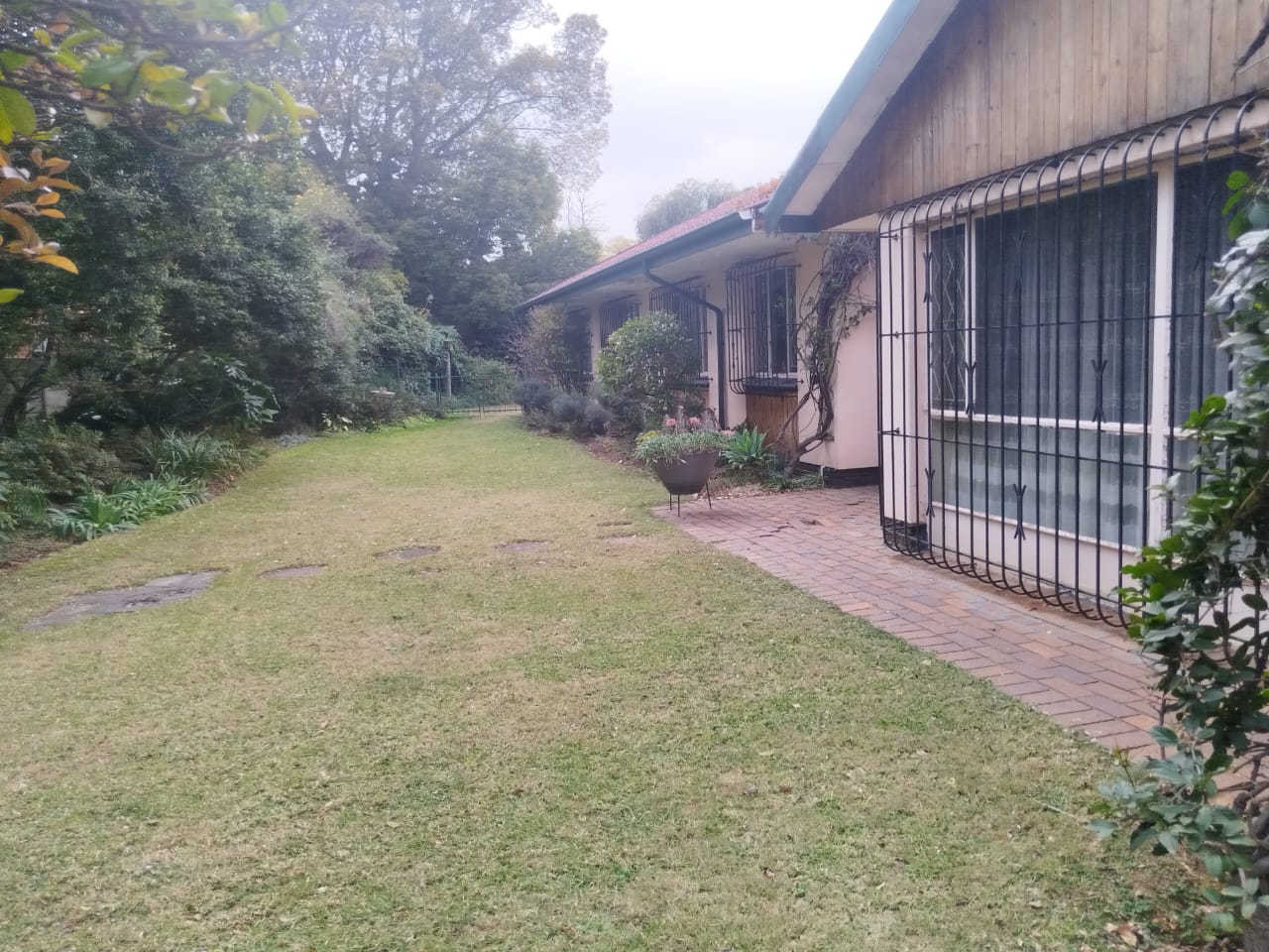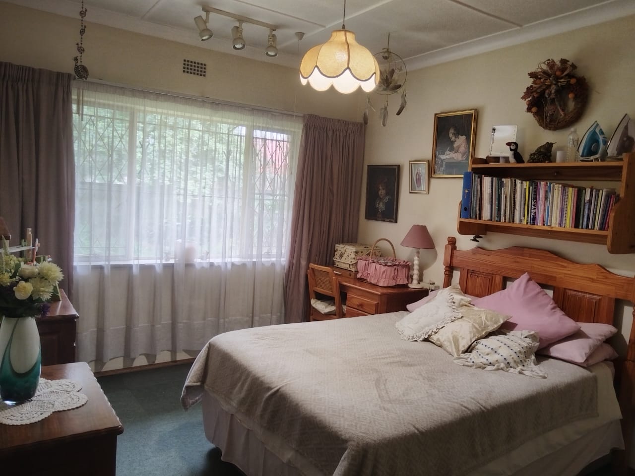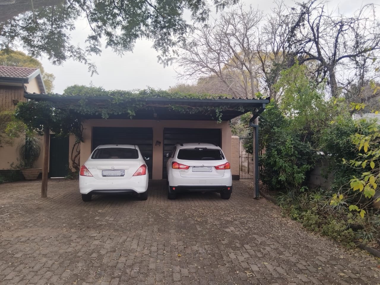 Outdoors, enjoy a peaceful garden space featuring a koi pond, water feature, thatch gazebo, and a sparkling pool — perfect for entertaining. A braai area, double garage, additional parking, and staff accommodation complete the exterior. The property is secured with Spanish wrought iron bars and benefits from a borehole, electric points in the garden, and an outside toilet and basin.
