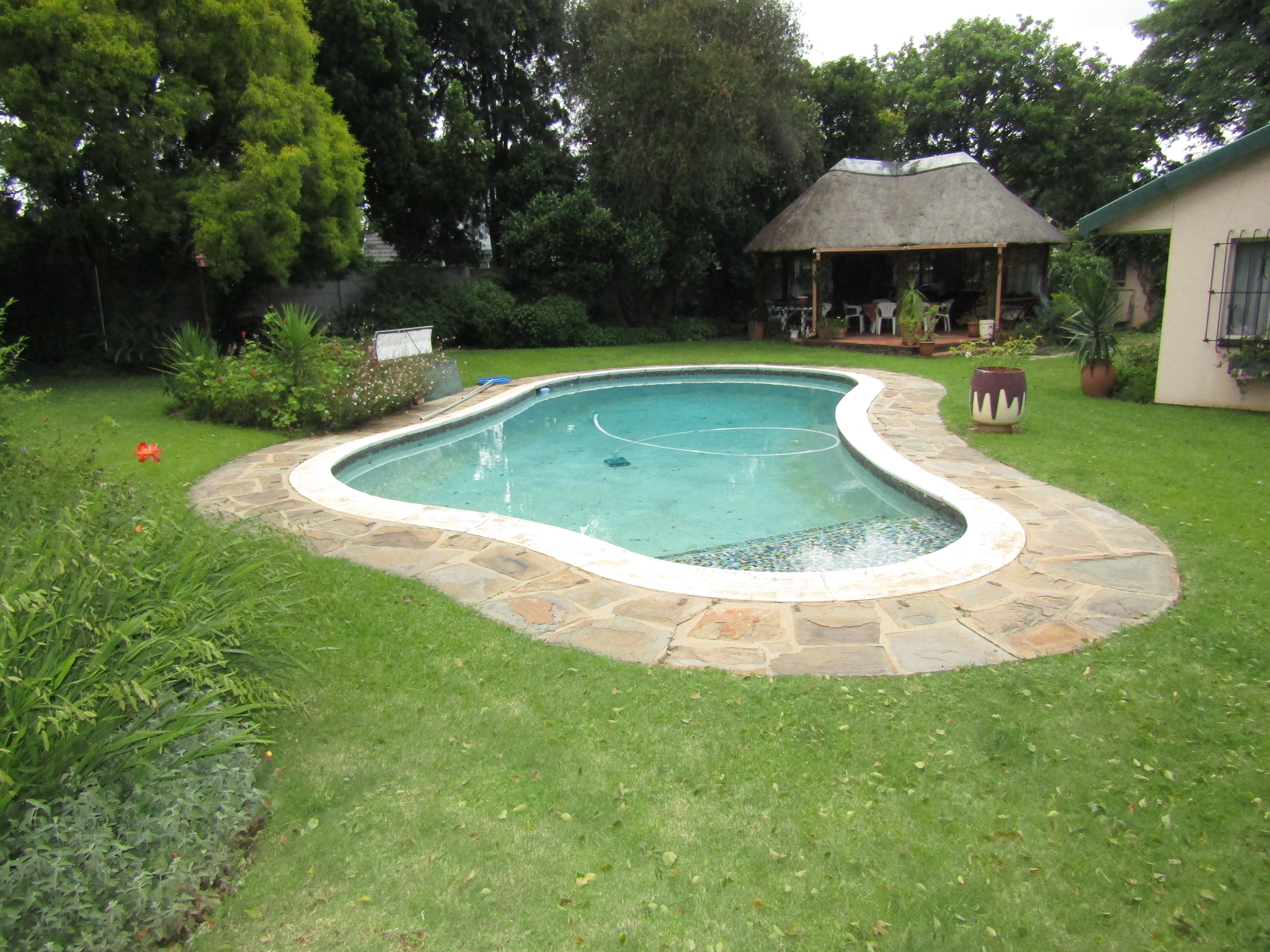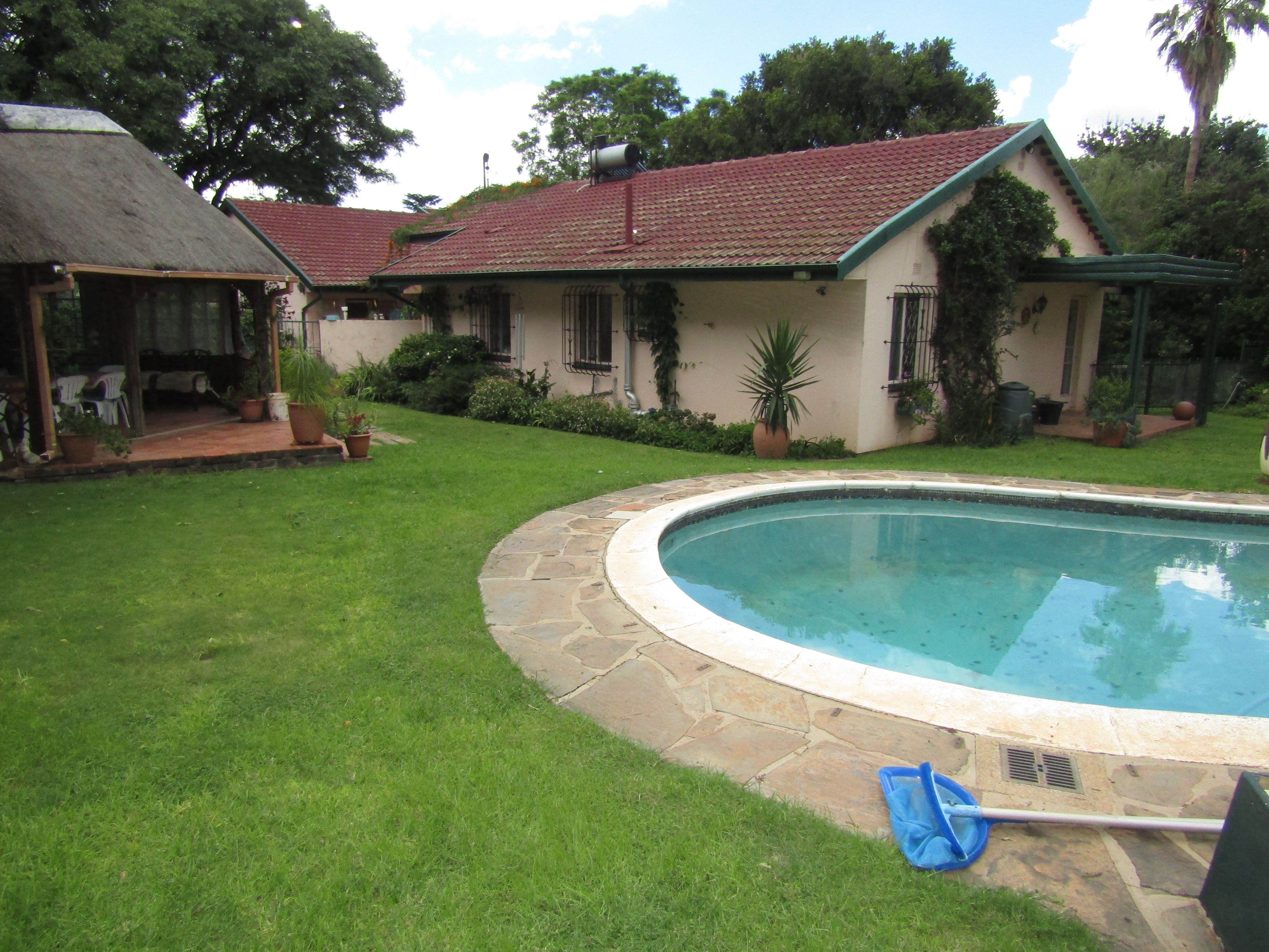 Fantastic 4bedrooms 2-bathroom in a quiet serene of Lombardy East , lots f entertainment in this home which you can make it yours , Family living room that flows toward the dining room Double garage and extra parking space and Olympic swimming pool in the house. land scape garden , bore hole, outside mates quarters and storage the house offers more come view for yourself don't be disappointed