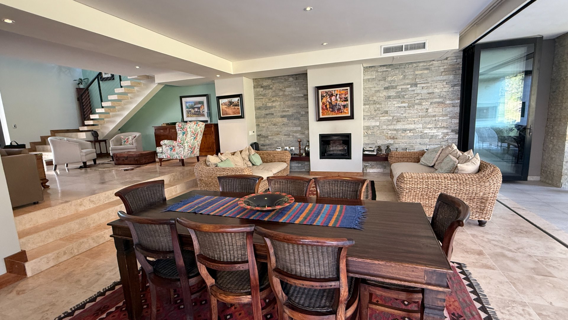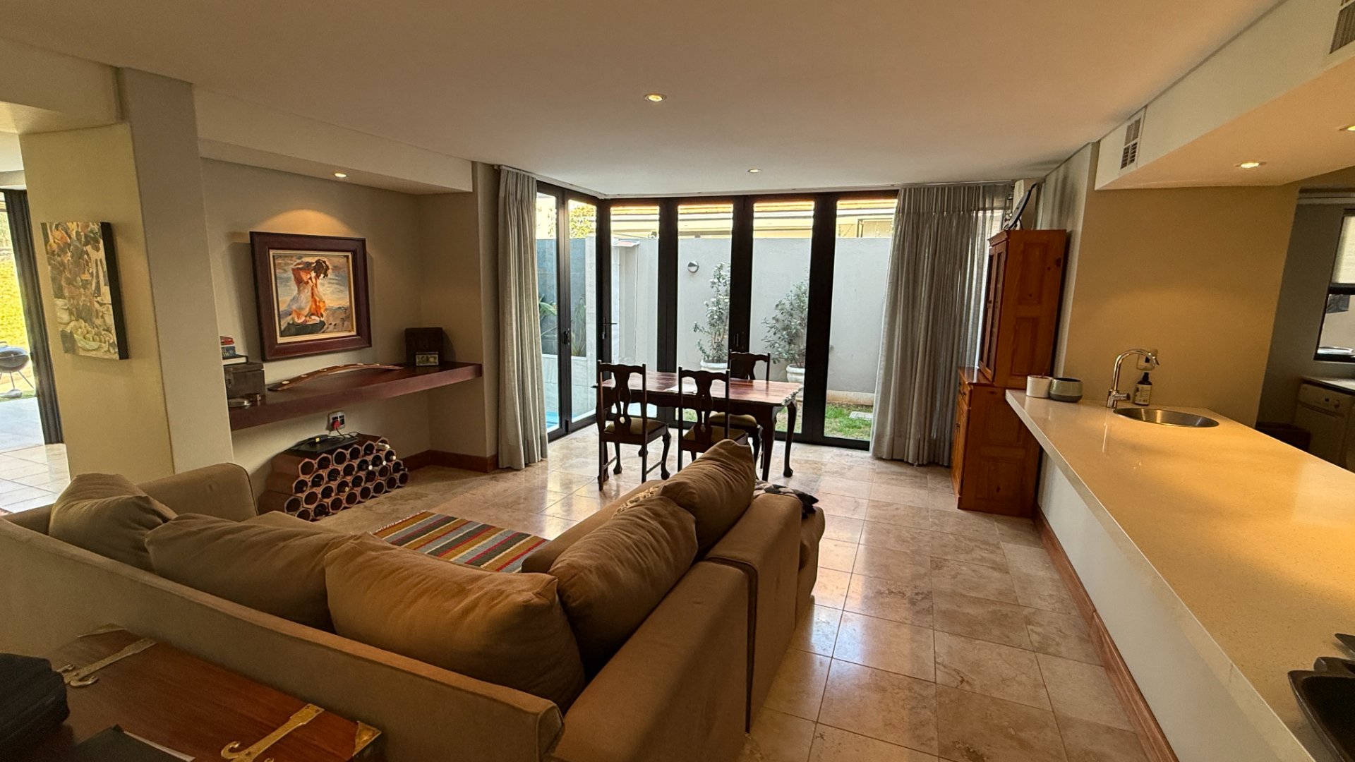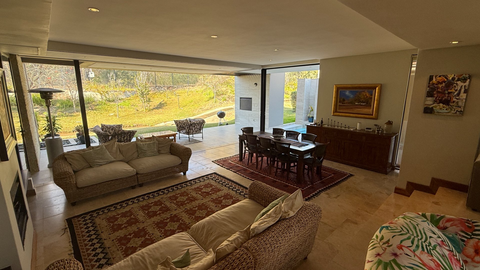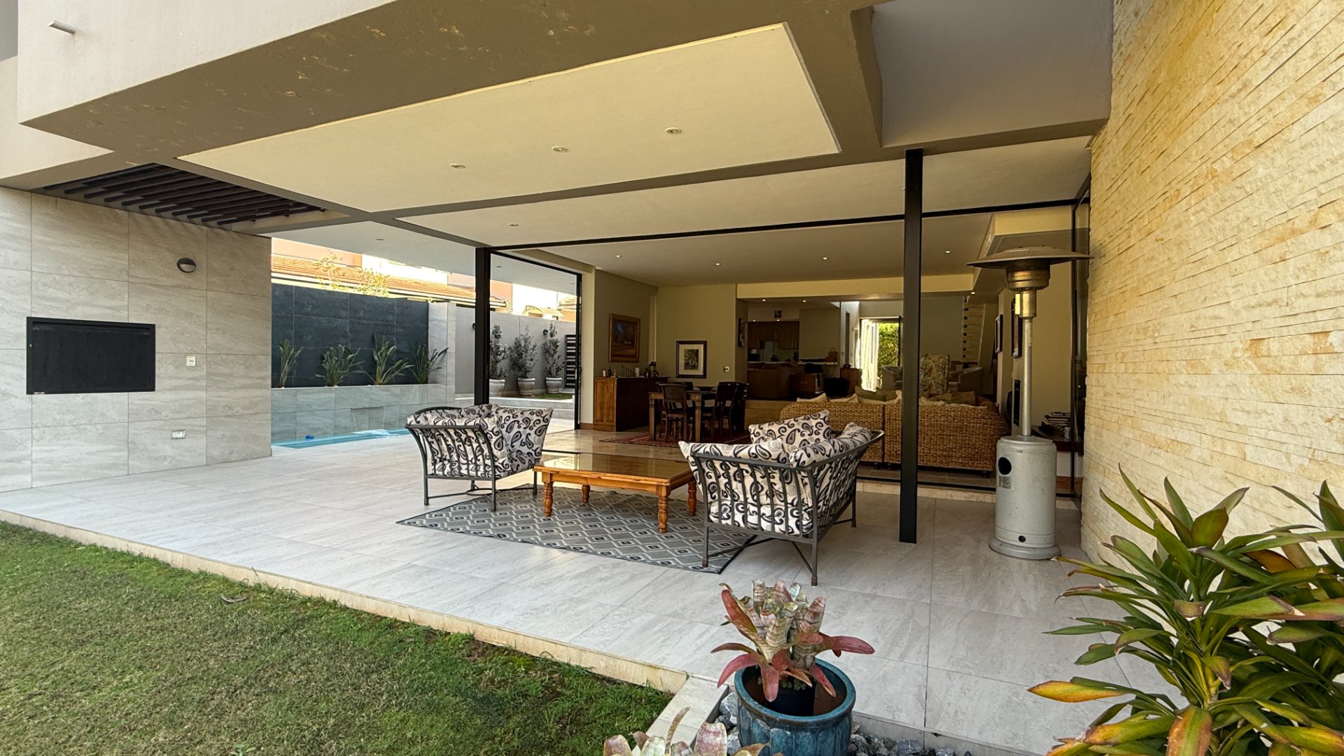 The home’s open-plan layout flows effortlessly between the living, dining, and entertainment spaces, all finished with sleek, high-end materials.