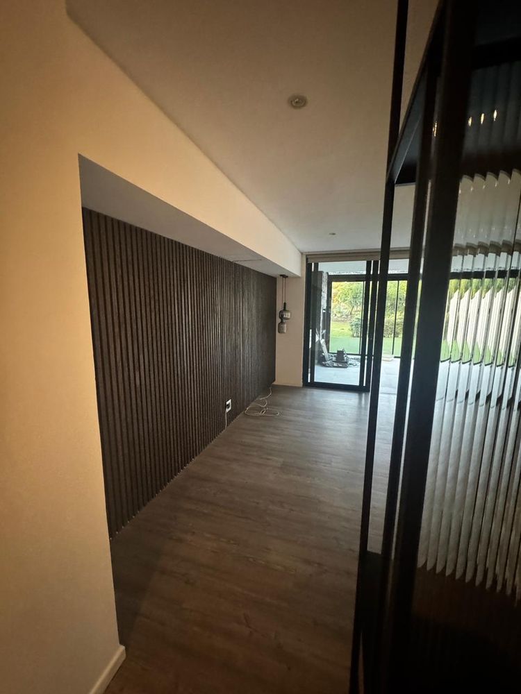 - Open plan living area with kitchen and patio and most incredible interior and modern colour scheme